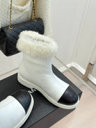 CC 25K Double C Colorblock Furry Snow Boots Black White Leather 512070