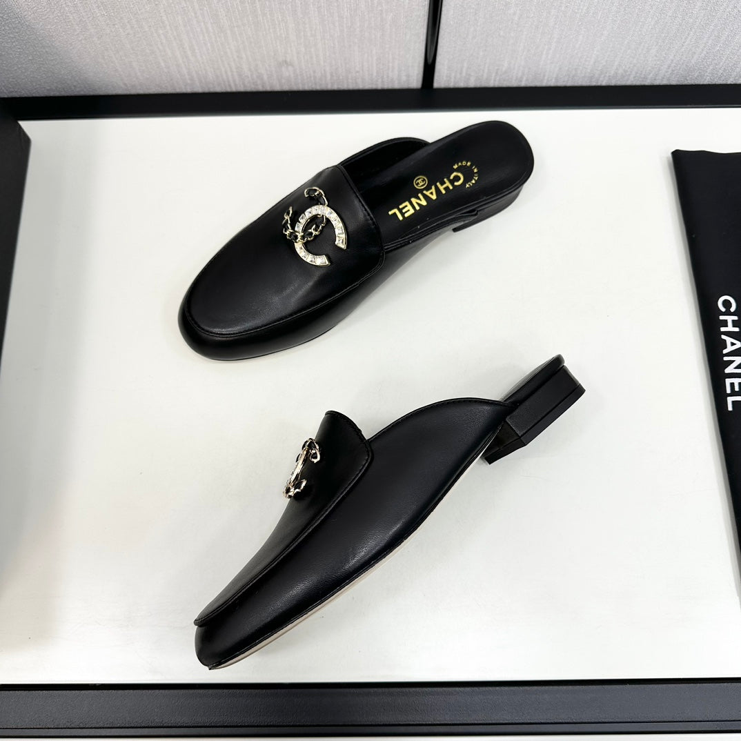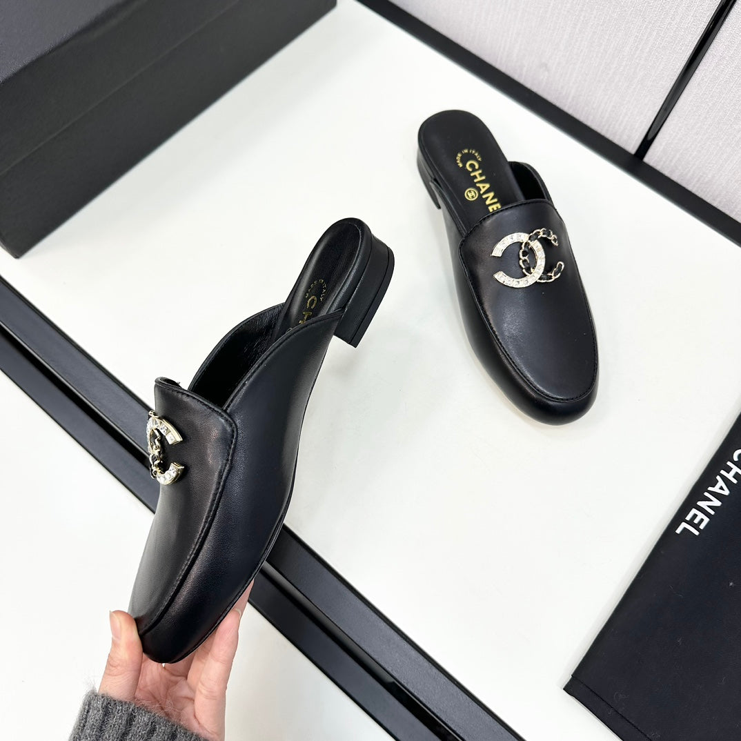 CC 25S Double C Buckle Mule Black Calfskin 165980