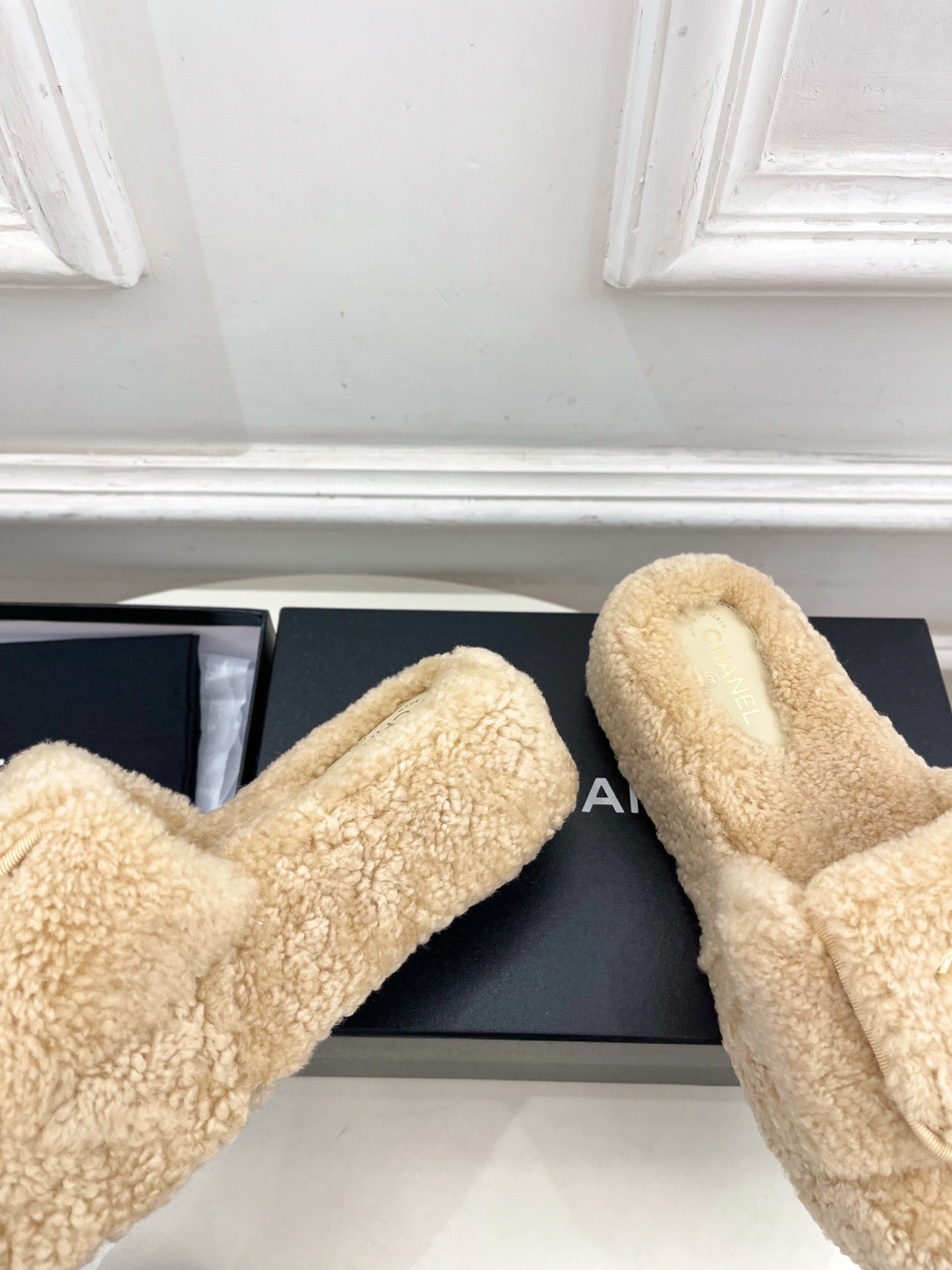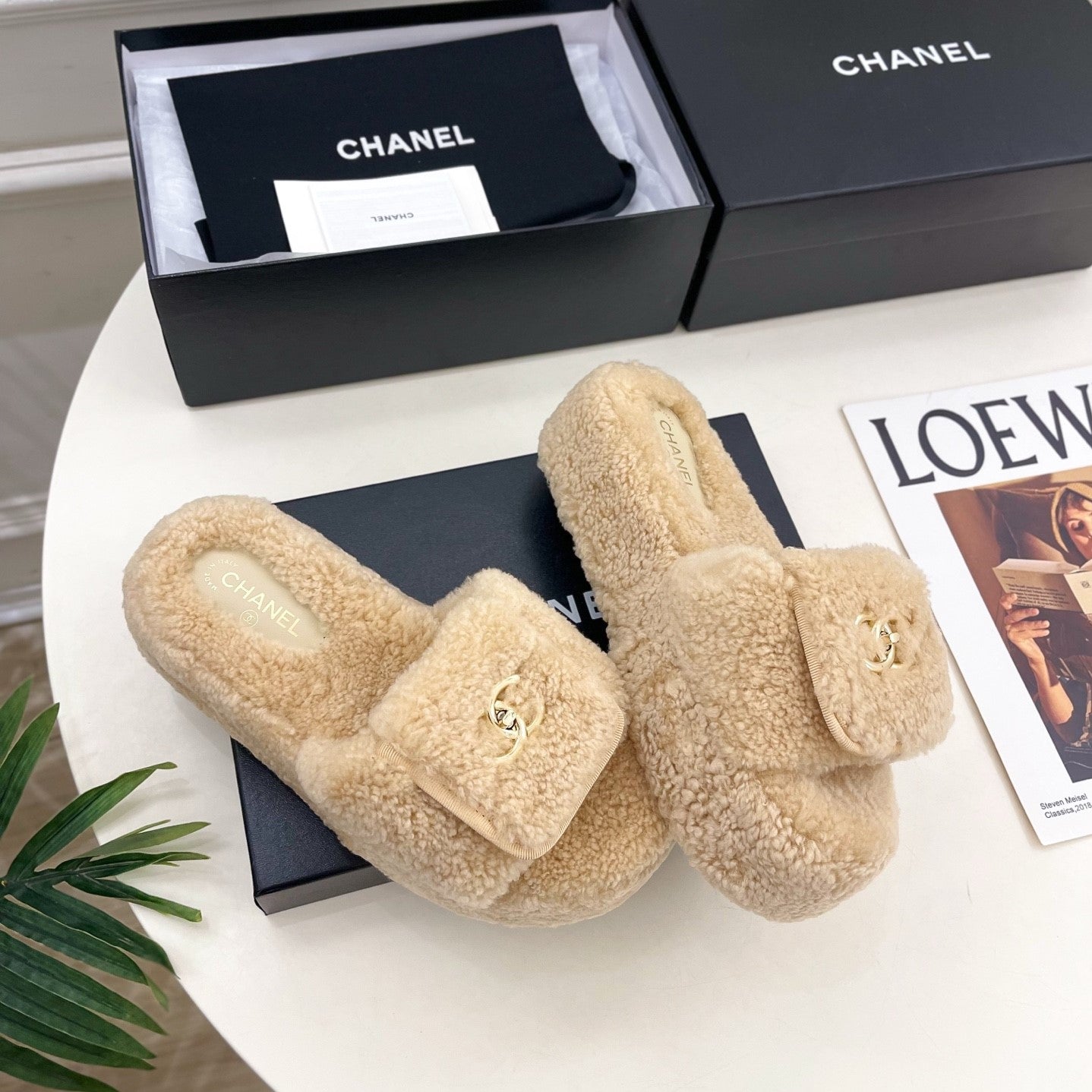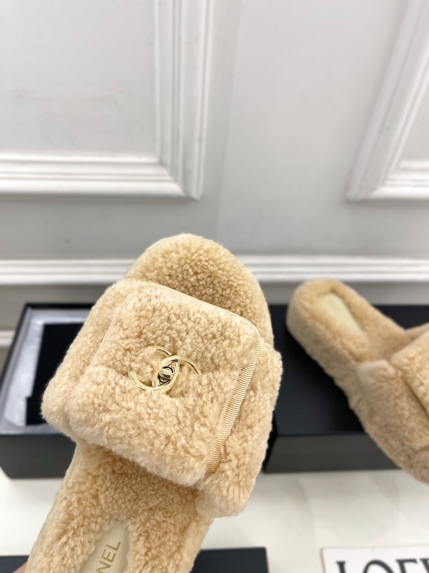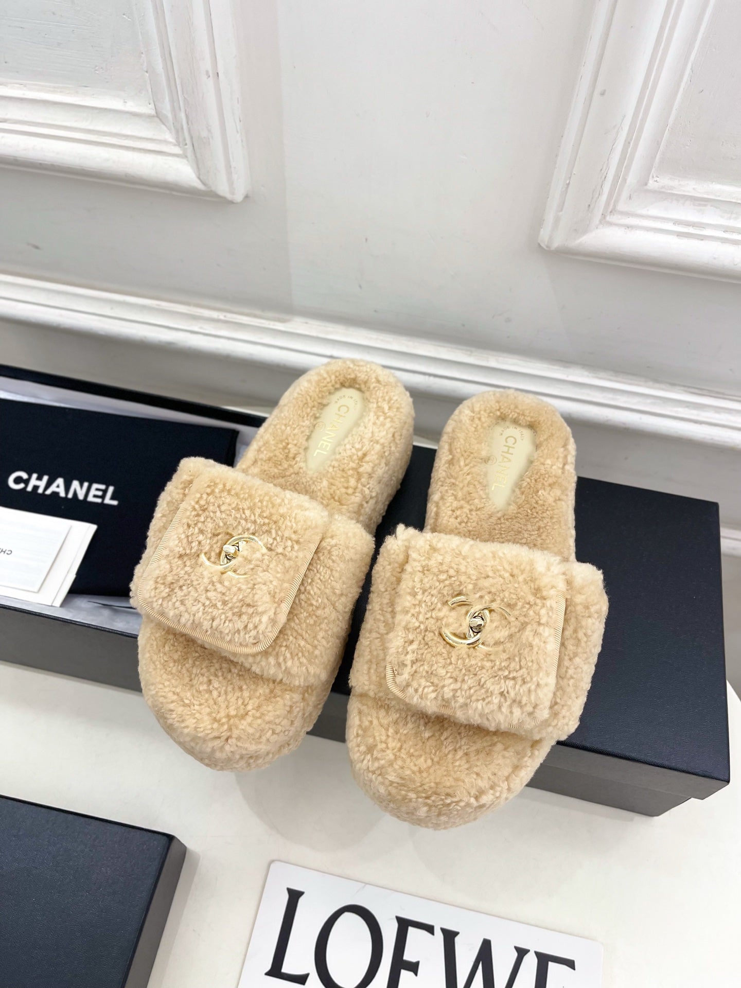 CC 25s Logo Slippers 50mm Beige Wool GHW 435264