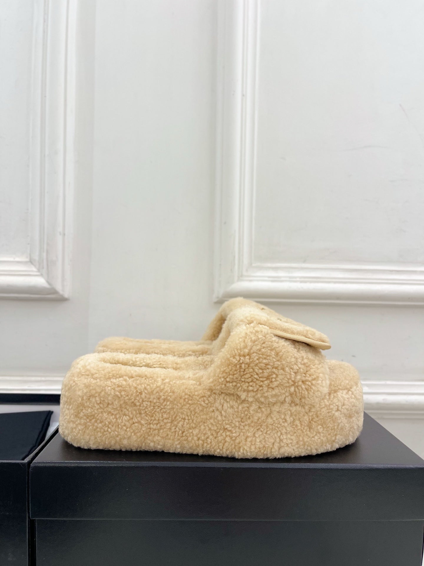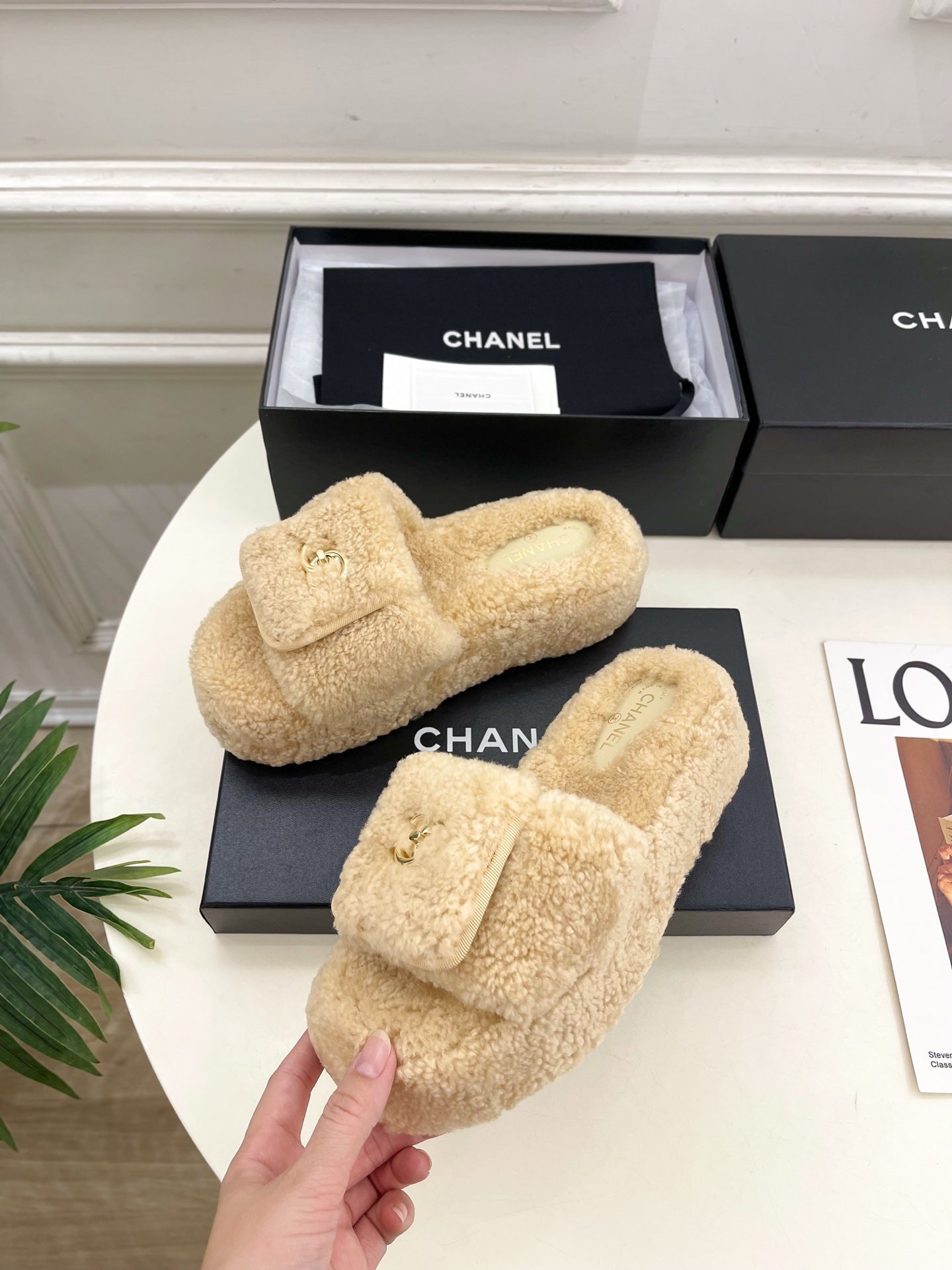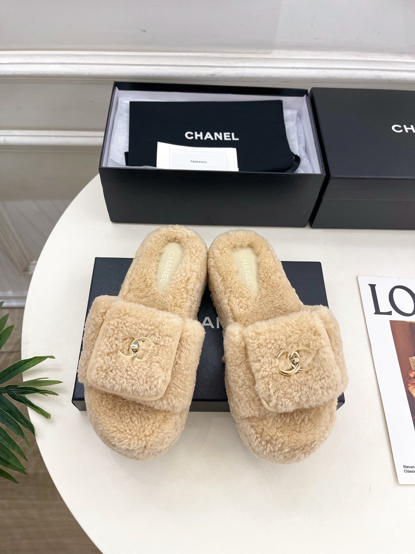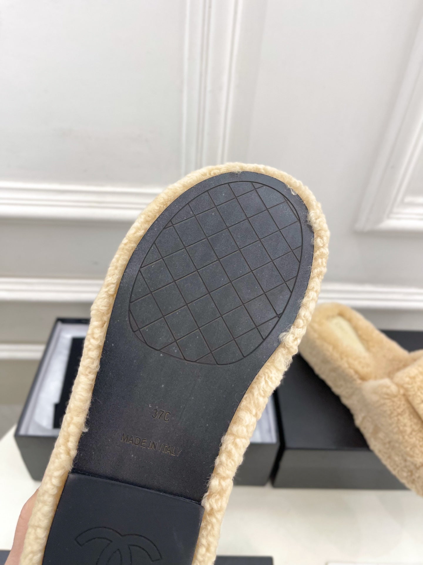 CC 25s Logo Slippers 50mm Beige Wool GHW 435264