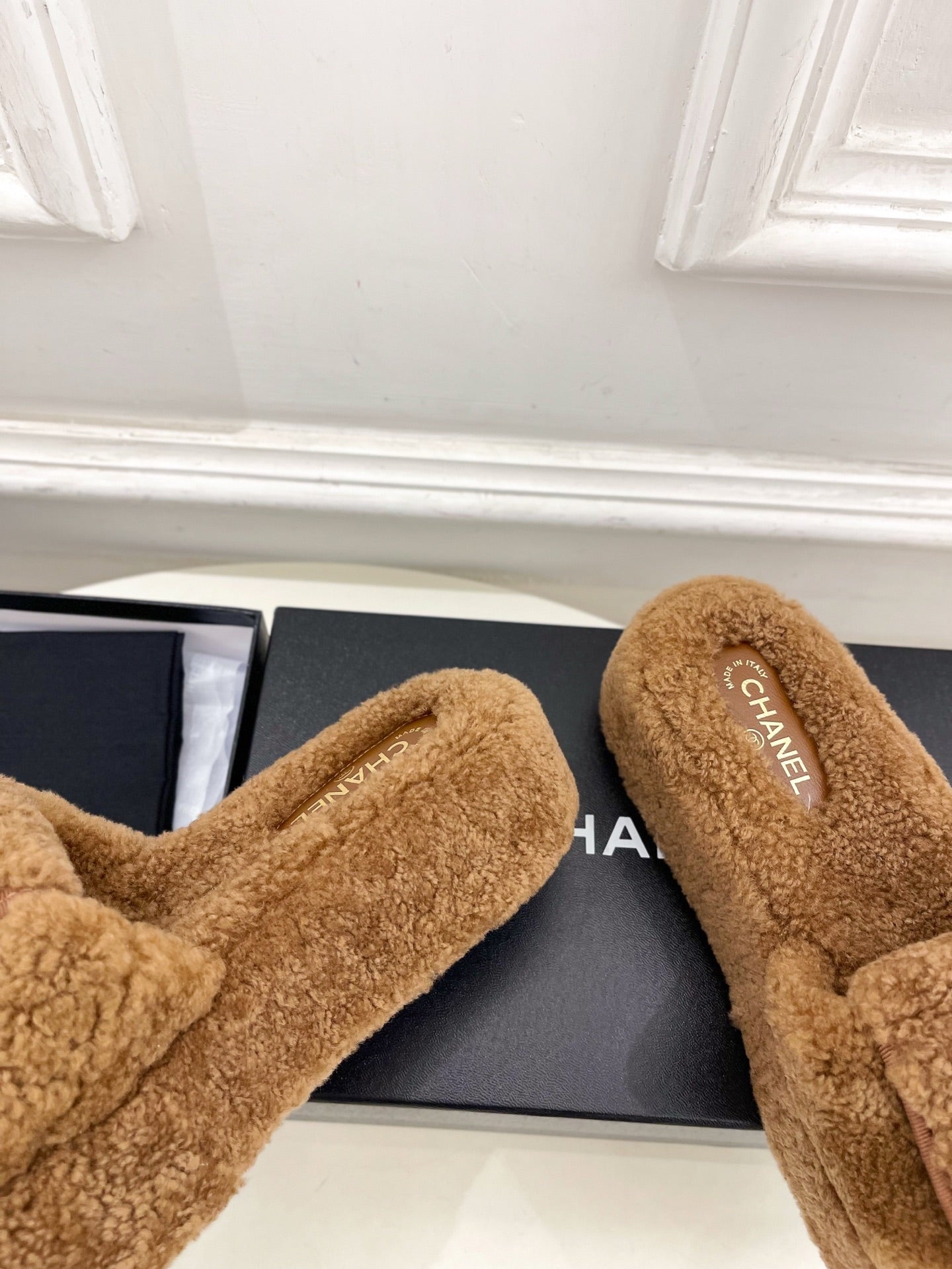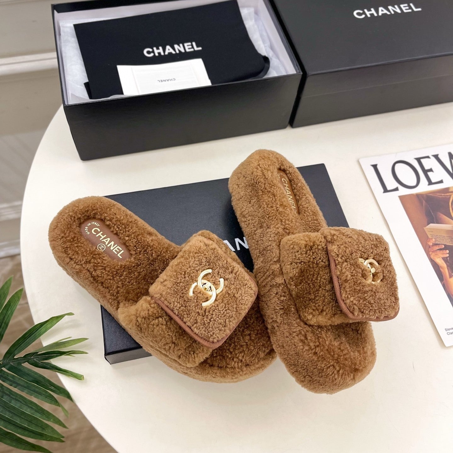 CC 25s Logo Slippers 50mm Brown Wool GHW 435263