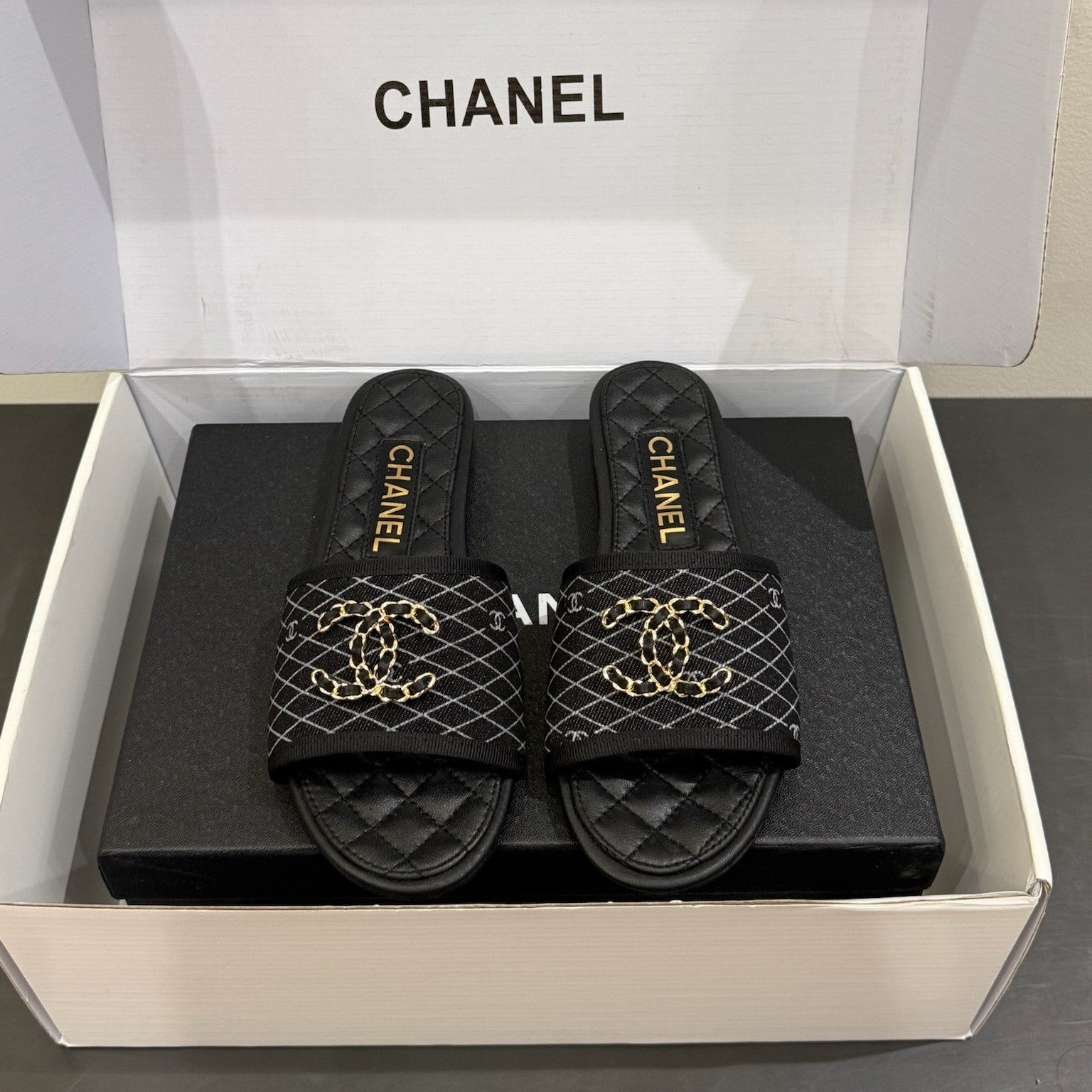 CC 25ss Chain Flat Slippers Black Cowhide & Sheepskin 417565