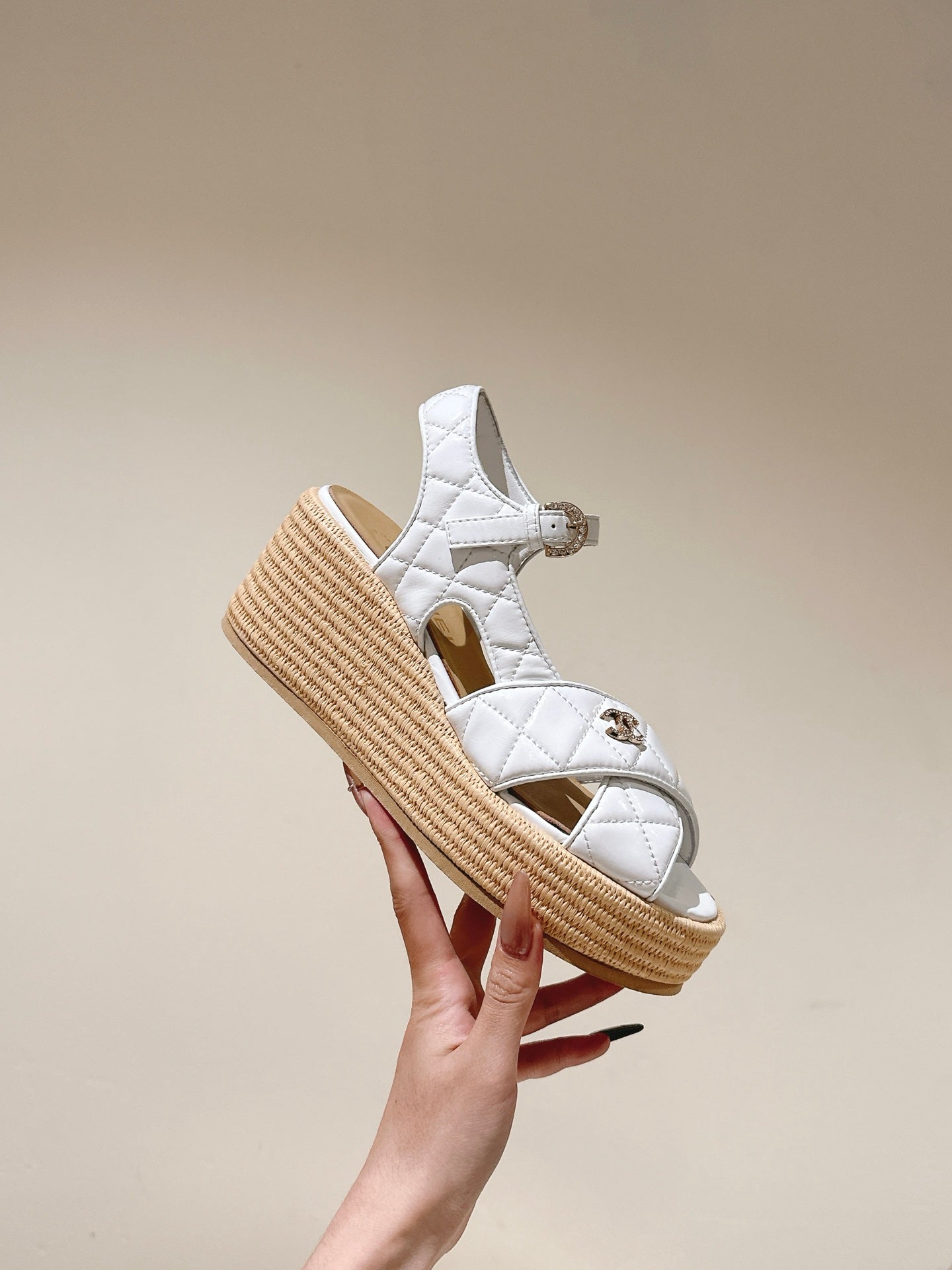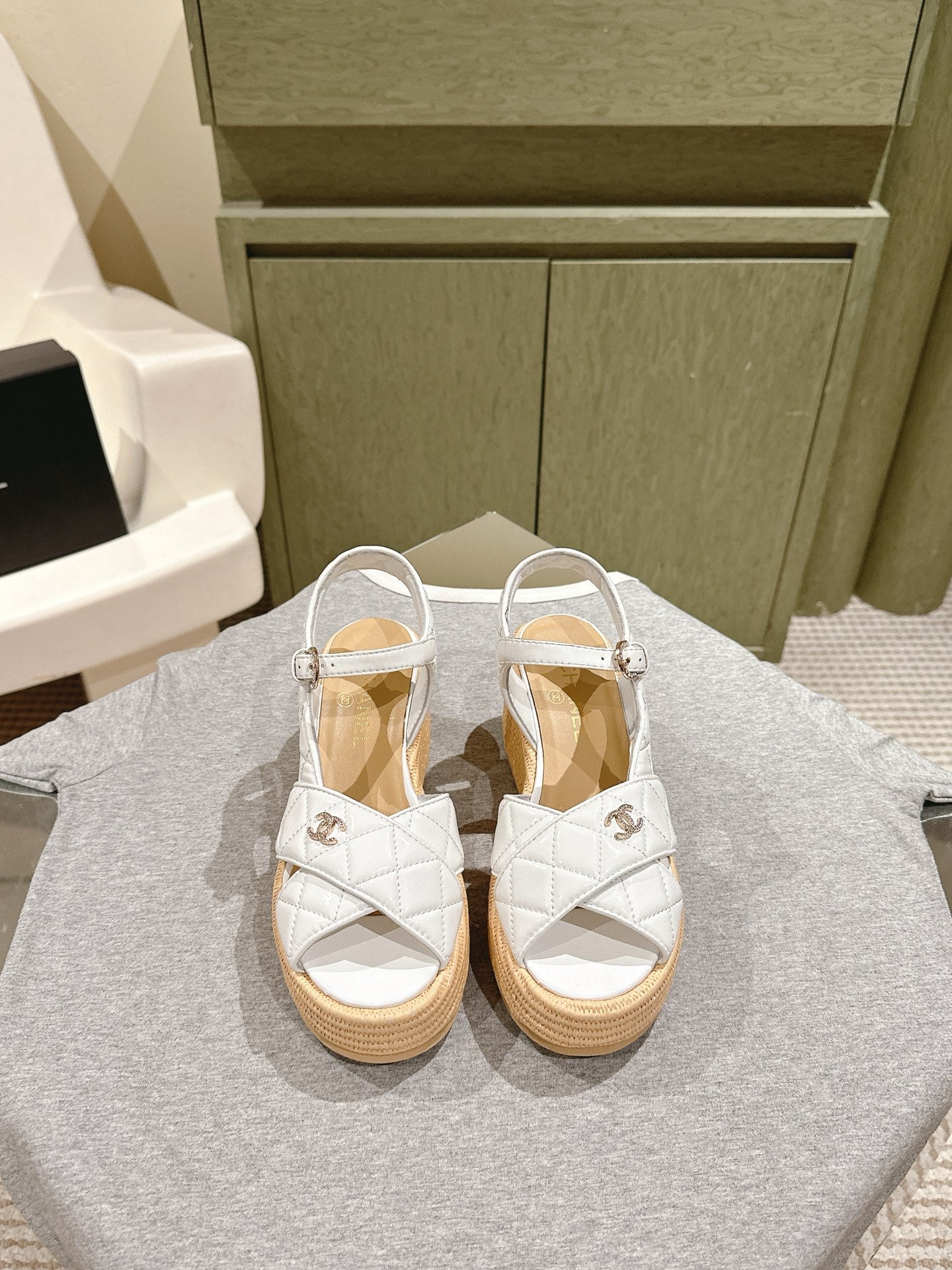 CC 25ss Espadrille Sandals 85mm White Quited Sheepskin 462243