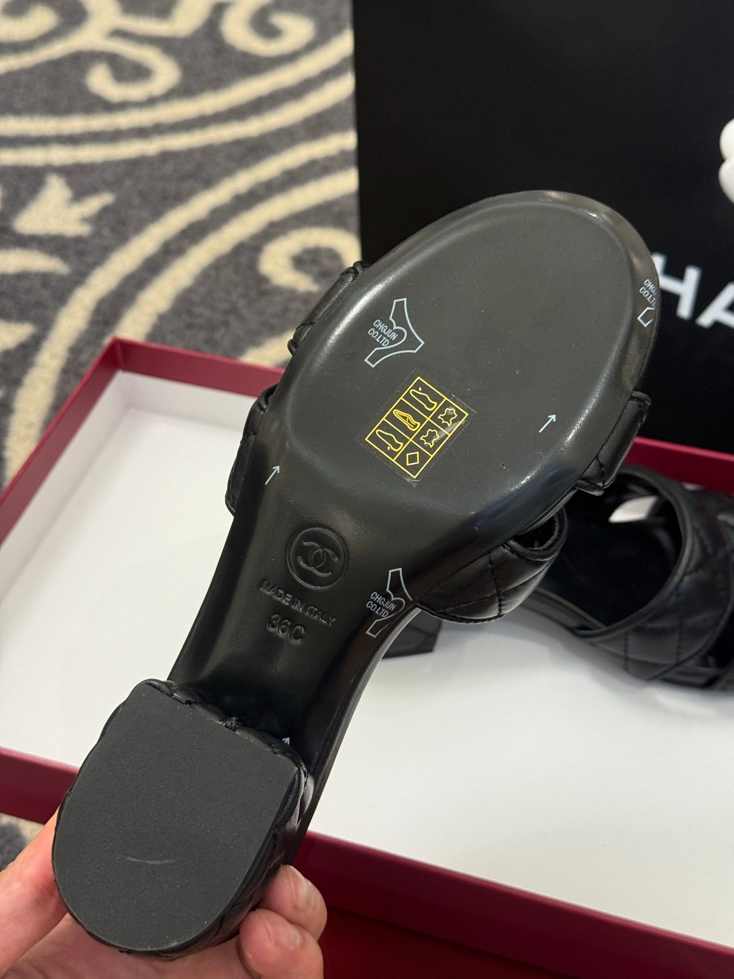 CC 25SS Honey Slippers 5cm Black Lambskin 319636