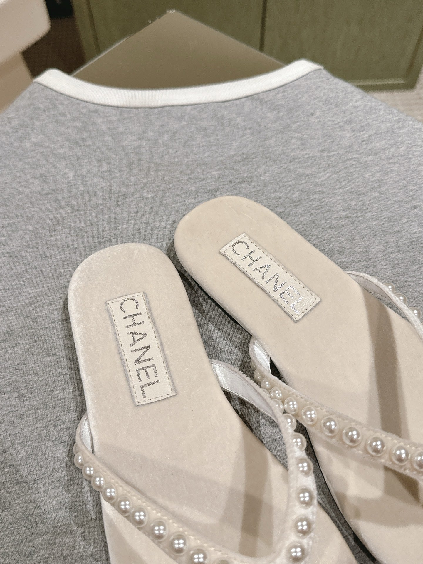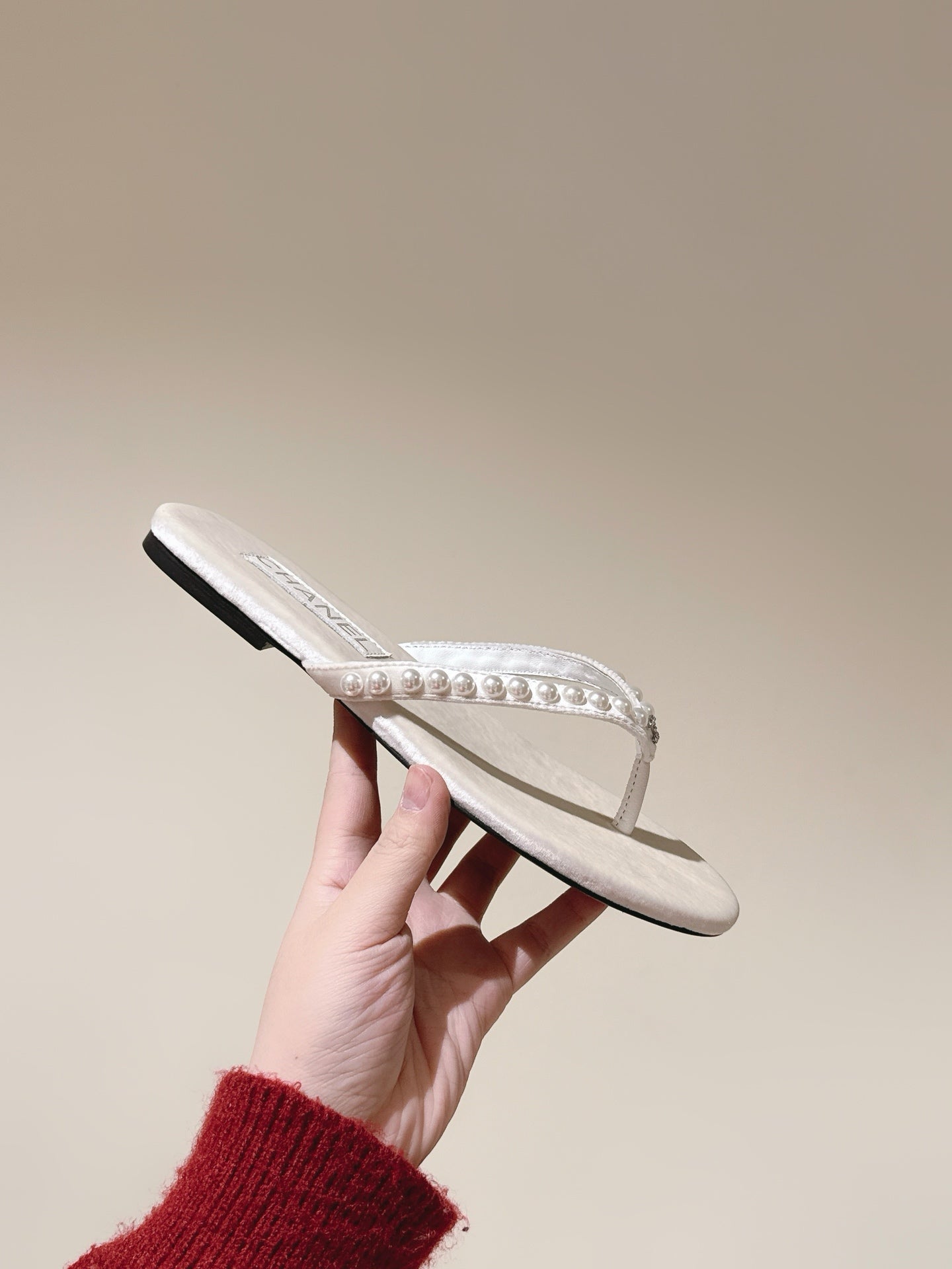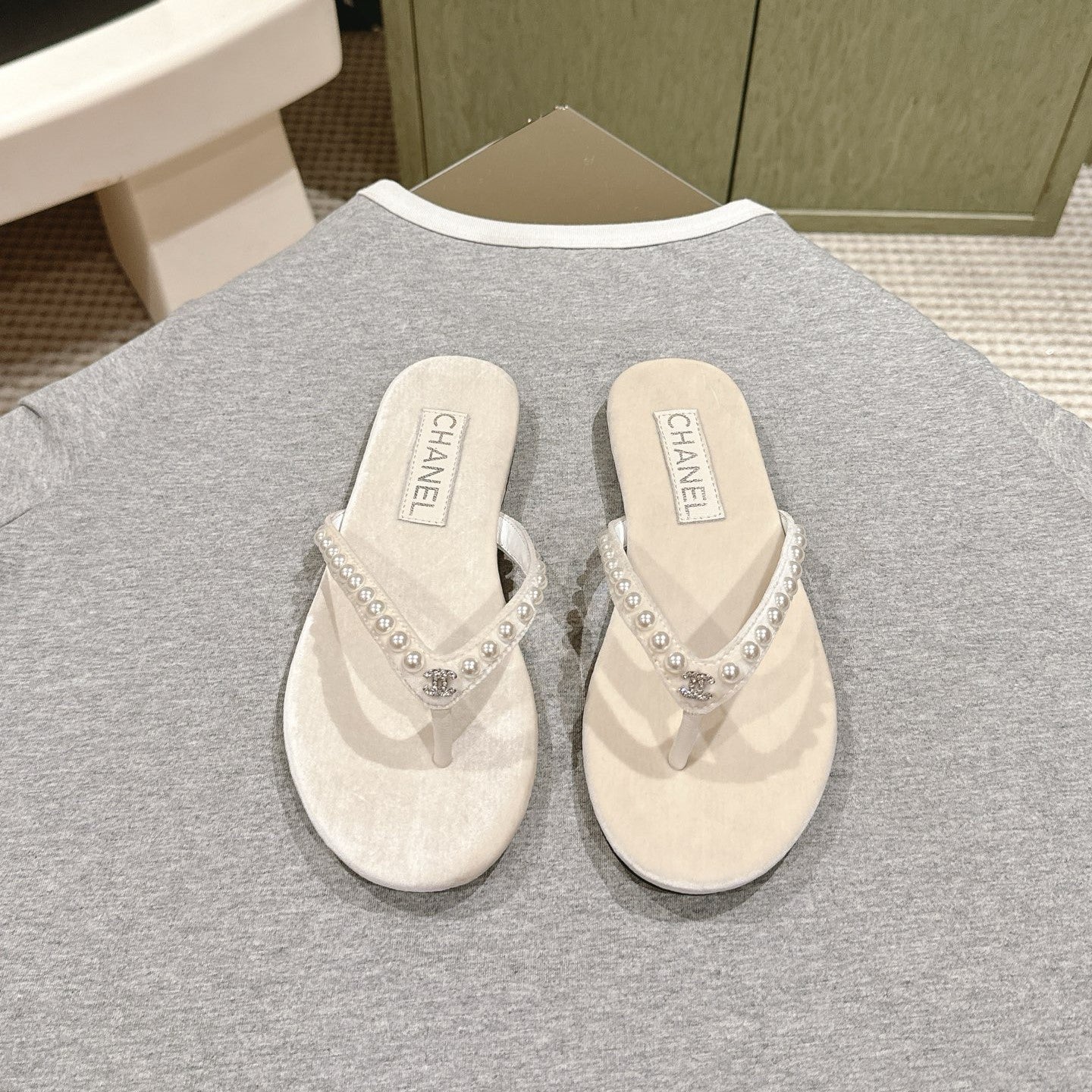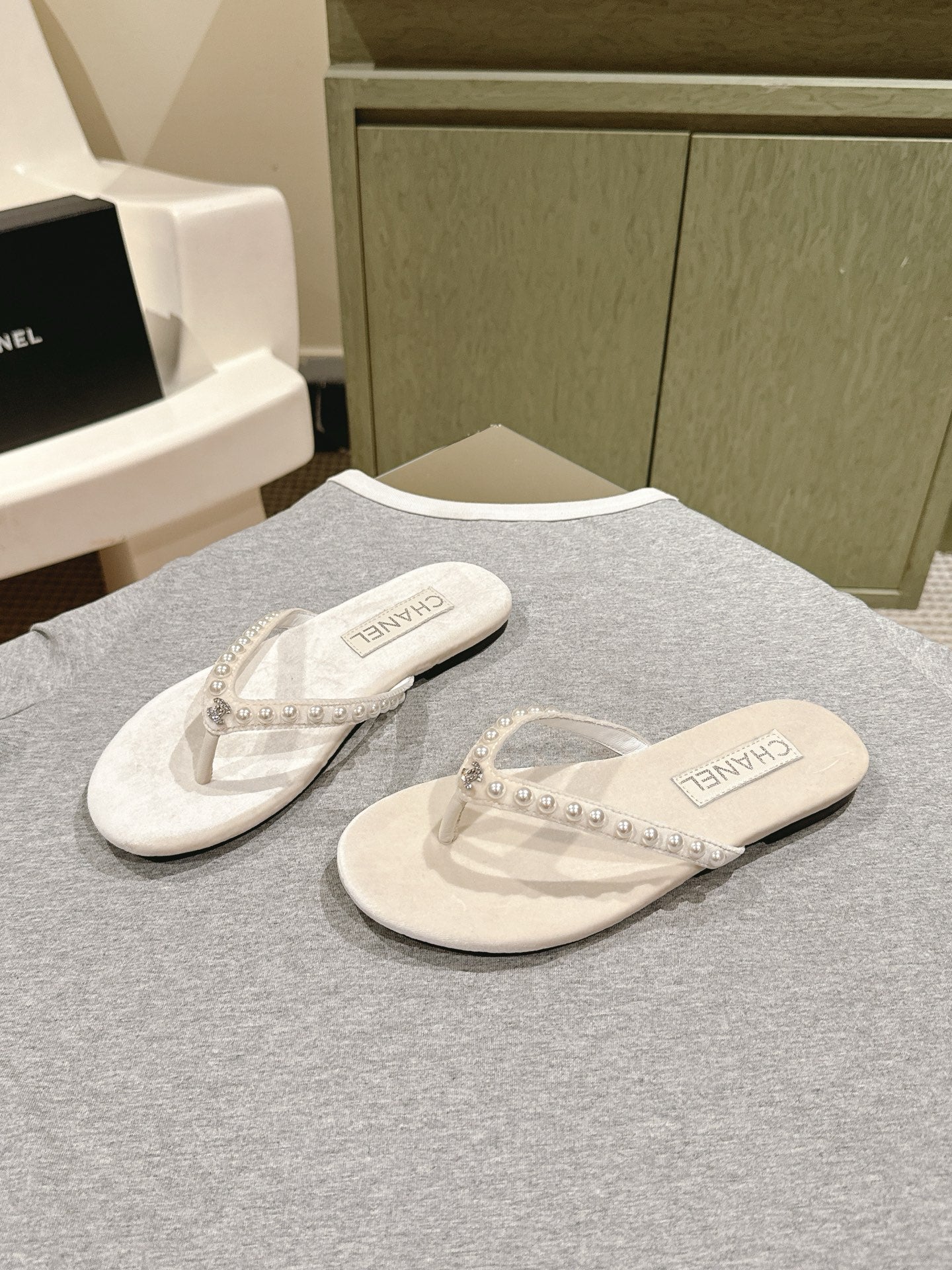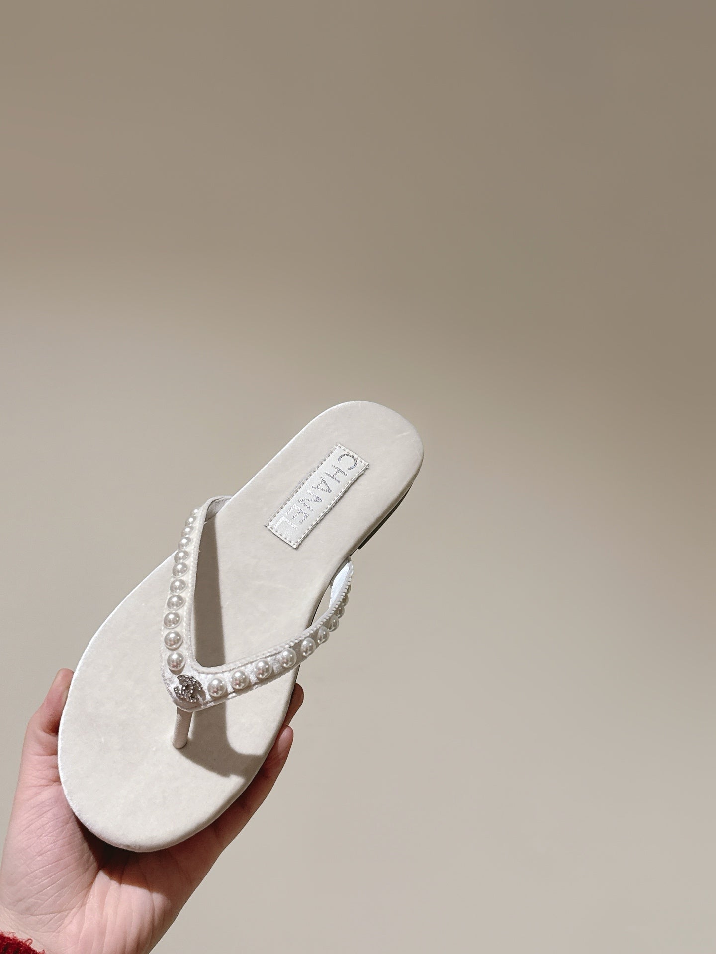 CC 25ss Pearl Thong Sandal Beige Velvet 461639