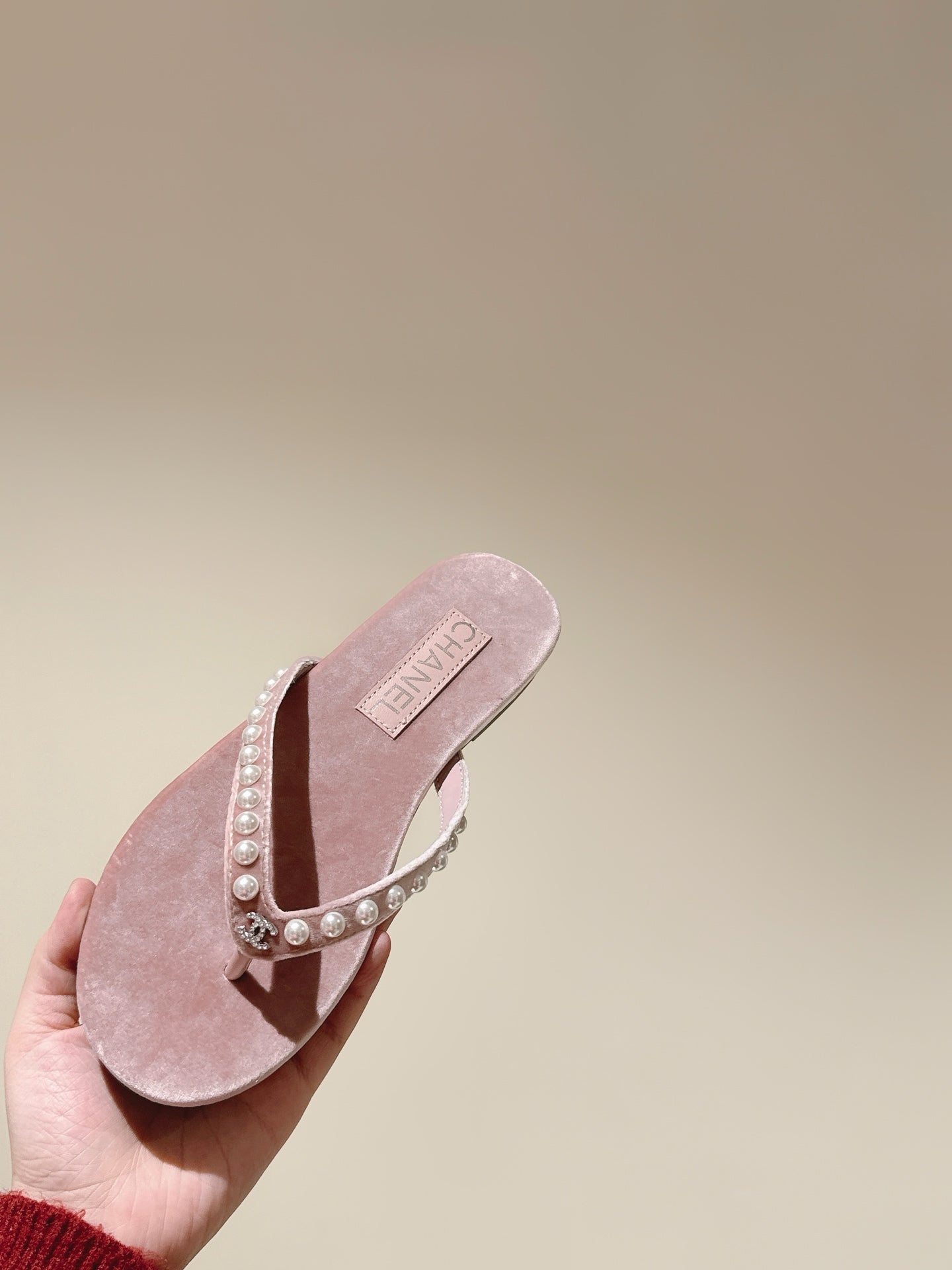 CC 25ss Pearl Thong Sandal Pink Velvet 461637