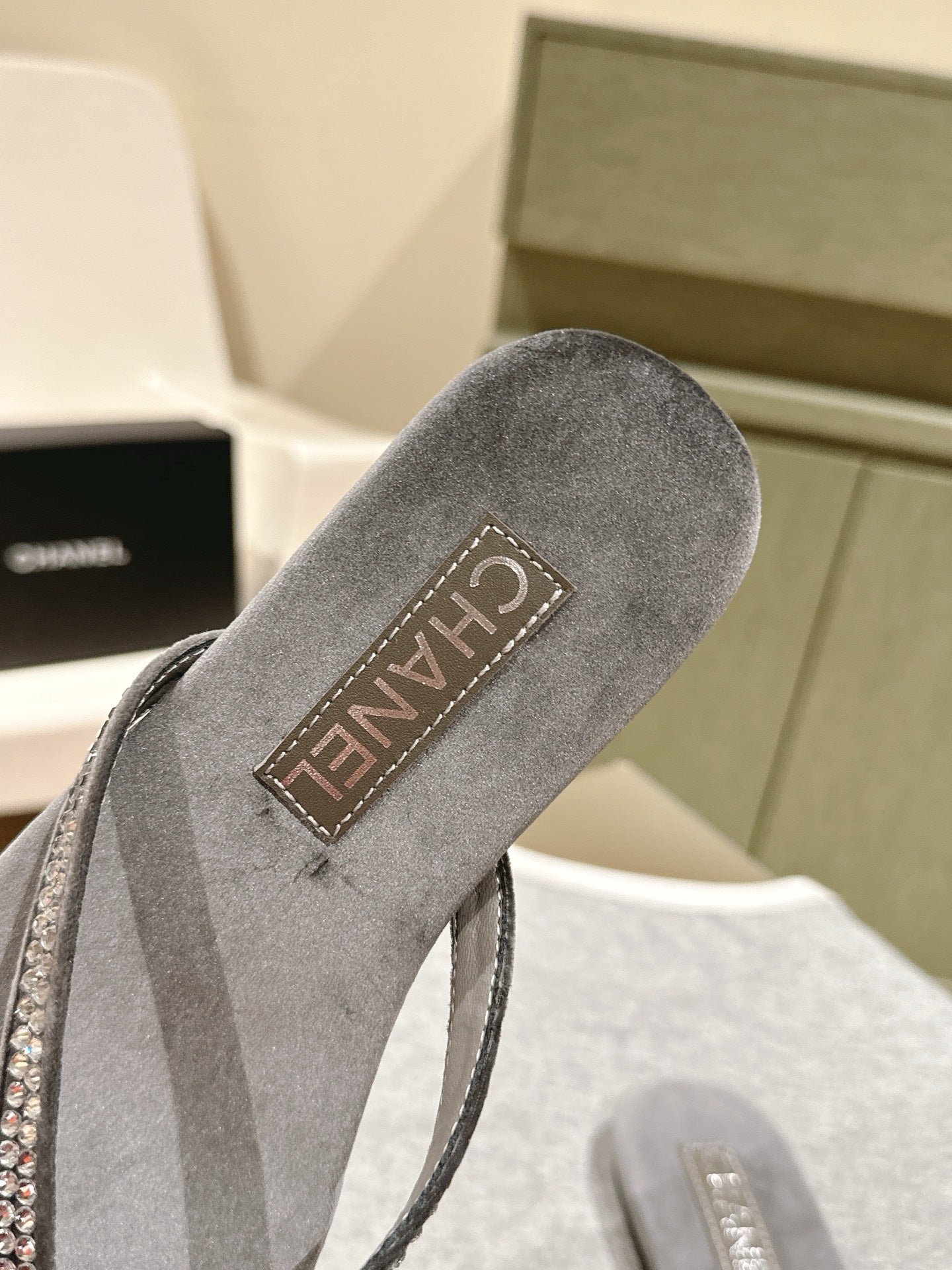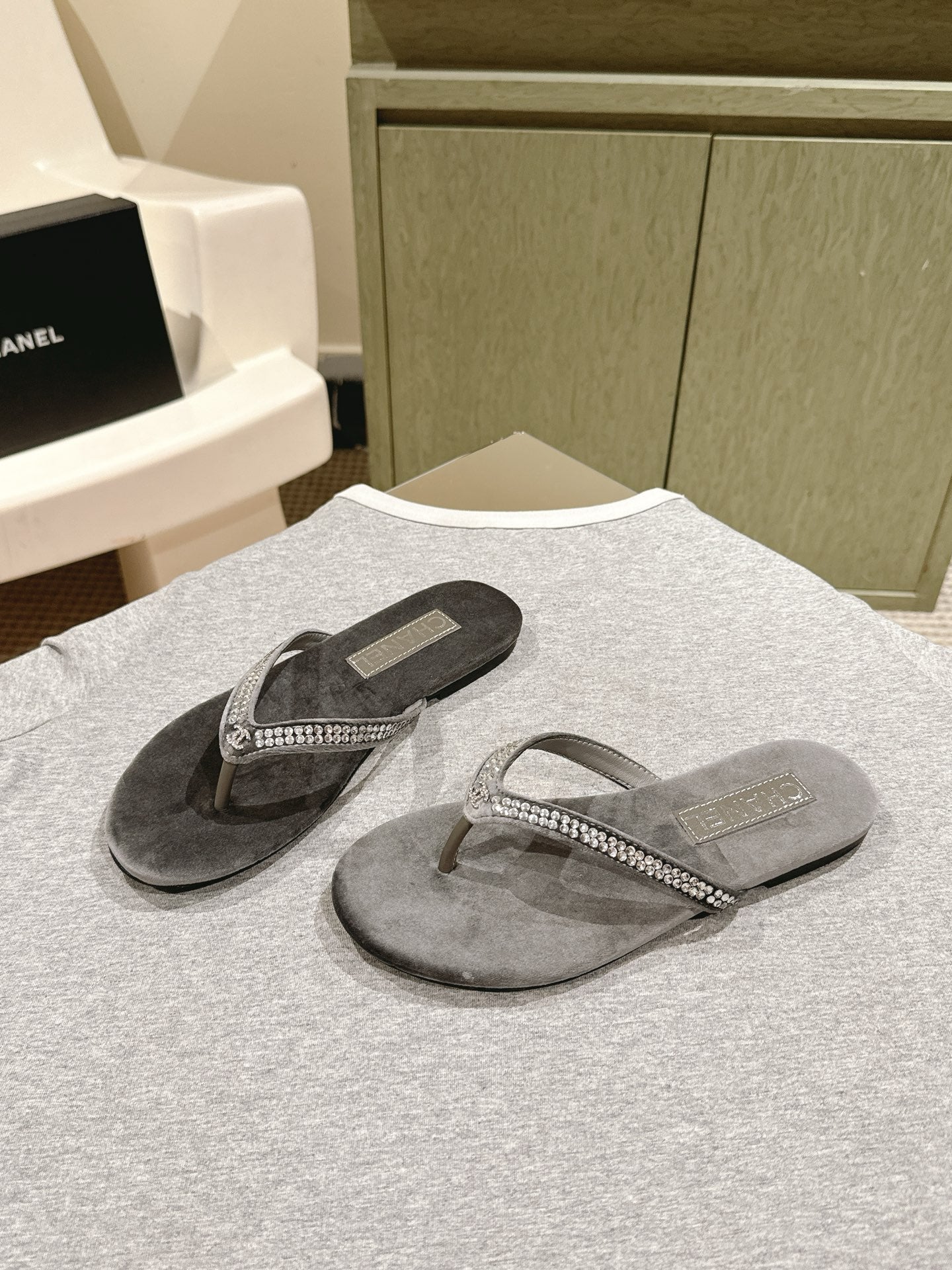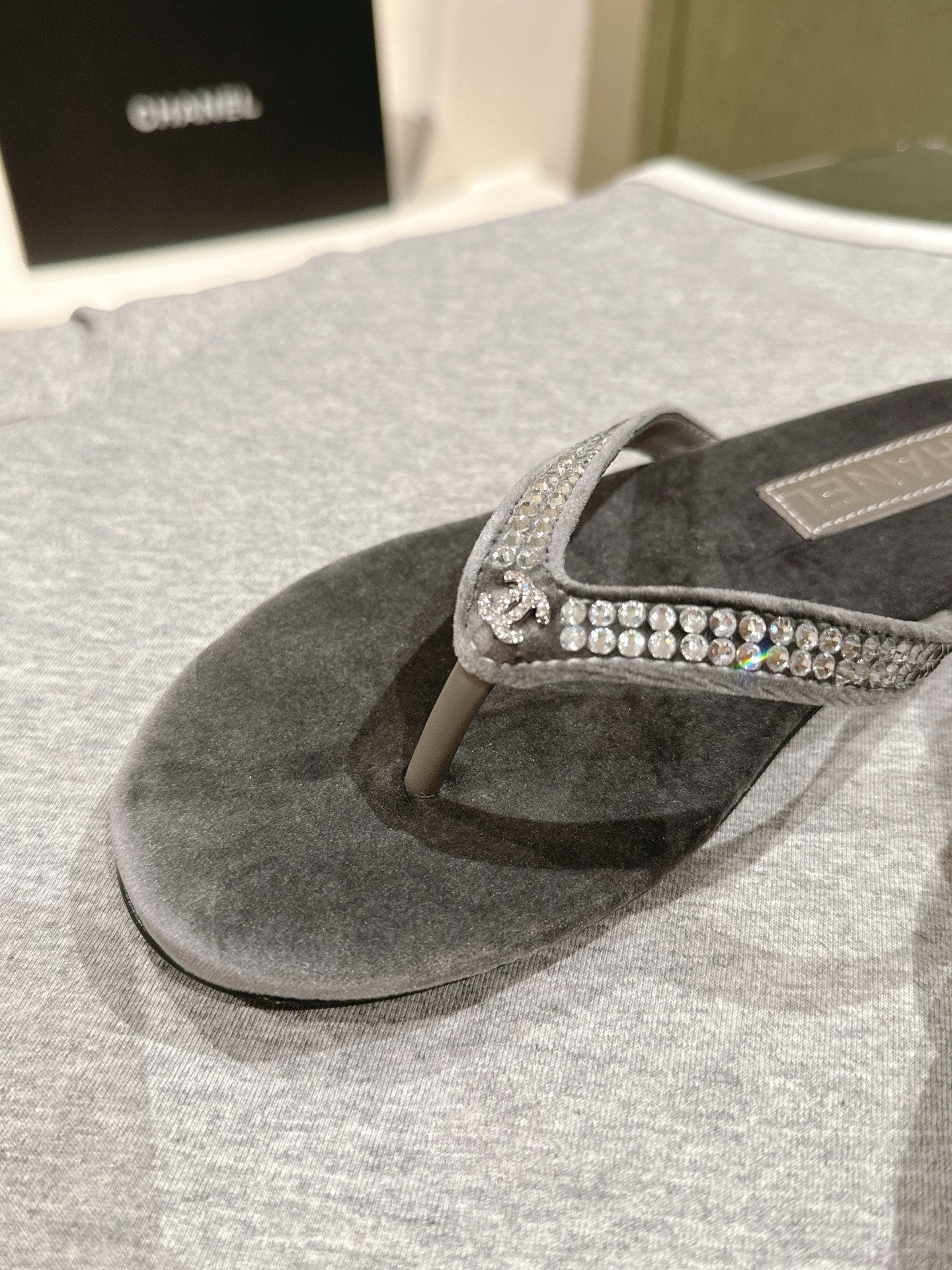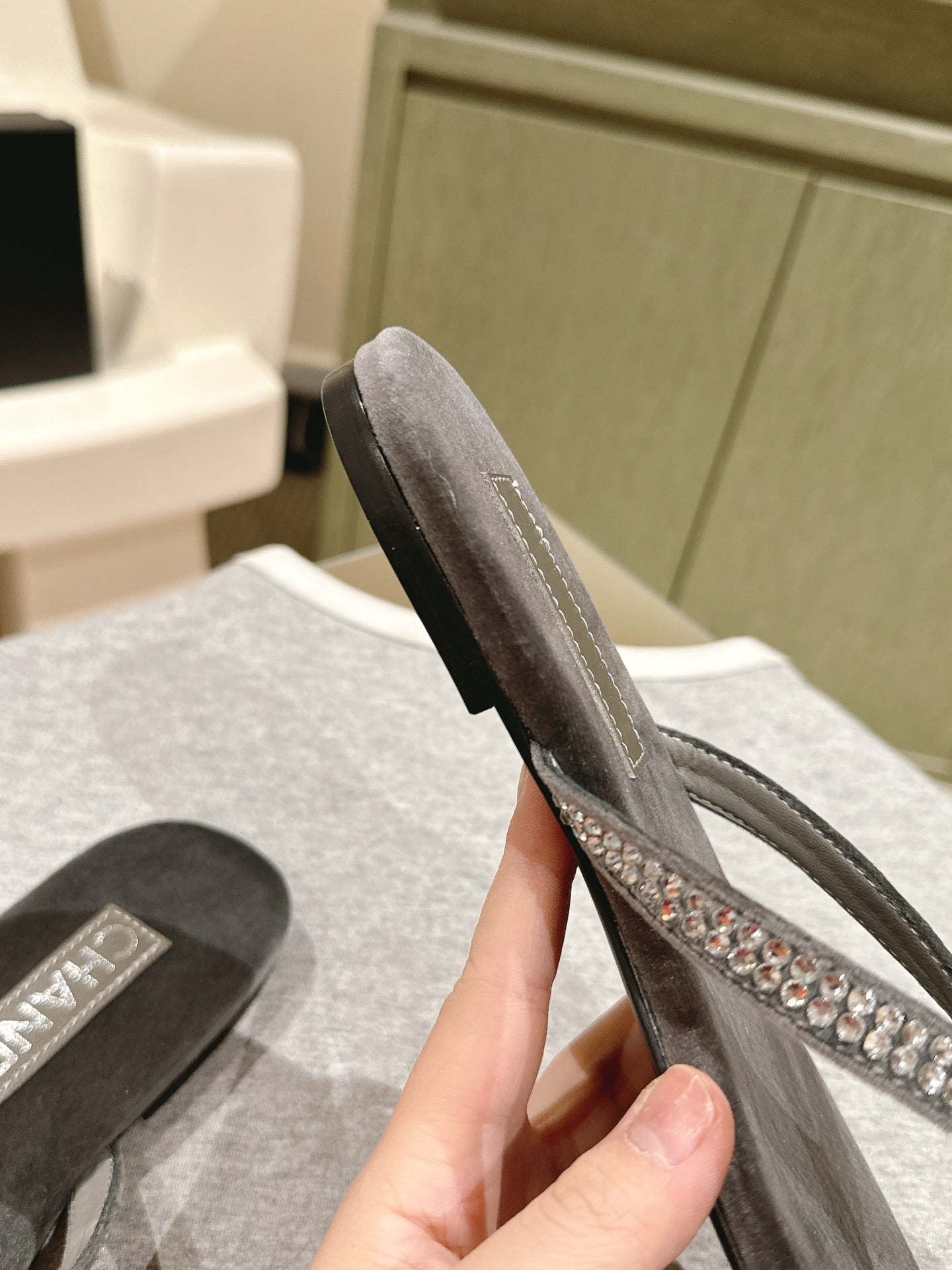 CC 25ss Rhinestone Thong Sandal Black Mix Grey Velvet 461635
