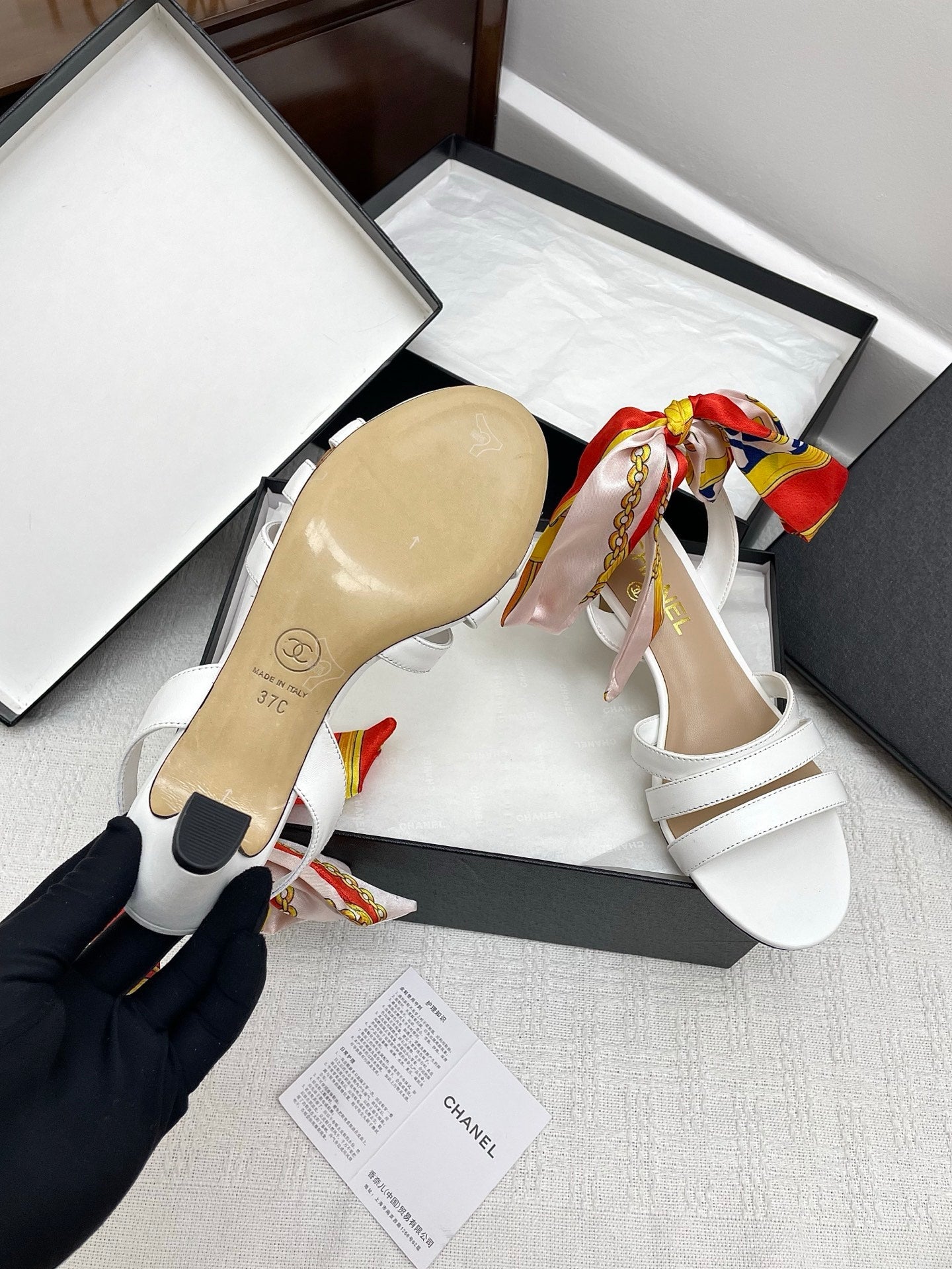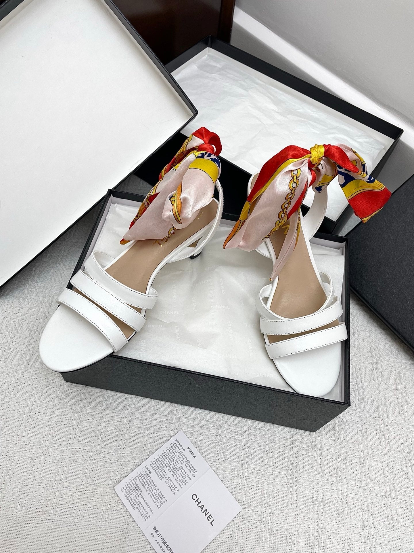 CC 25SS Sandals 5cm Three Straps White Calfskin 338326