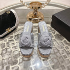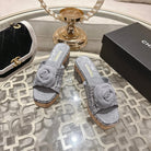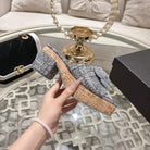 CC 26s Camellia Platform Slippers 65 Light Blue Grey Tweed Leather 627056