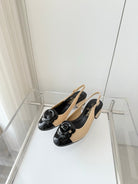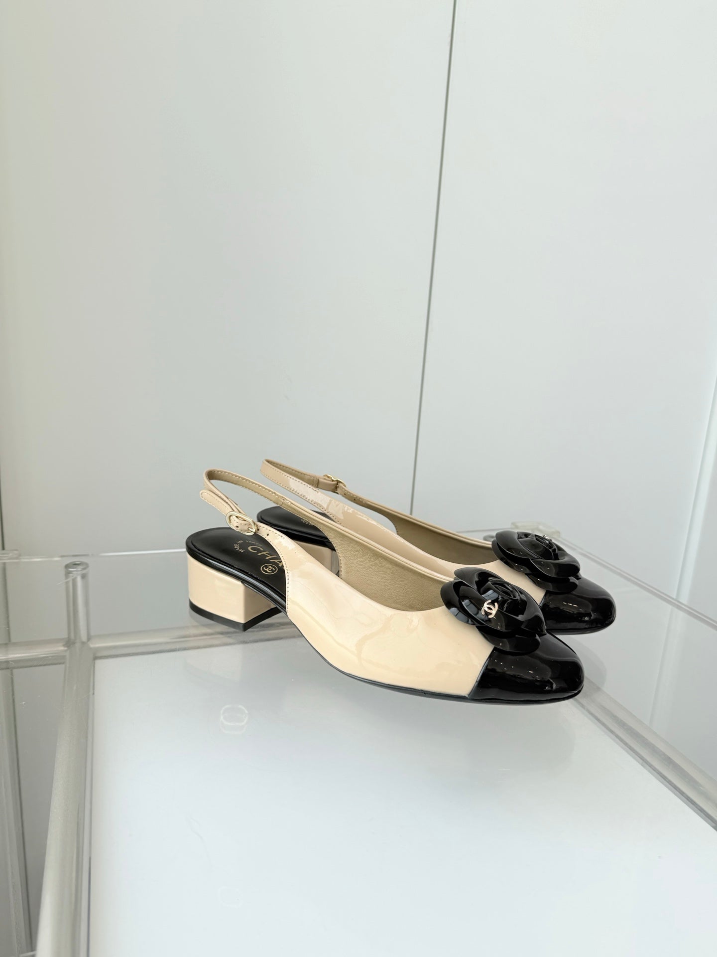 CC 26s Slingback Floral 3.5cm Black Beige Patent Leather 597417