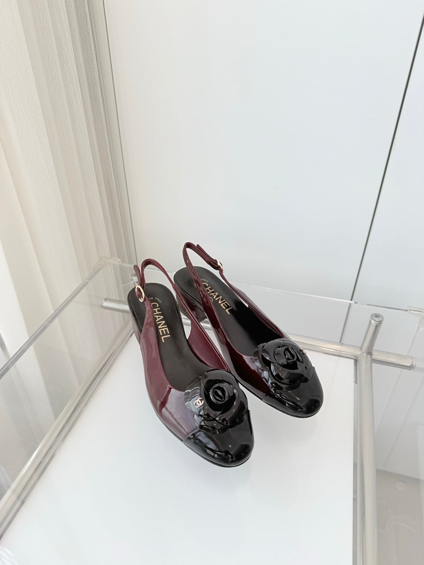 CC 26s Slingback Floral 3.5cm Black Burgundy Patent Leather 597416