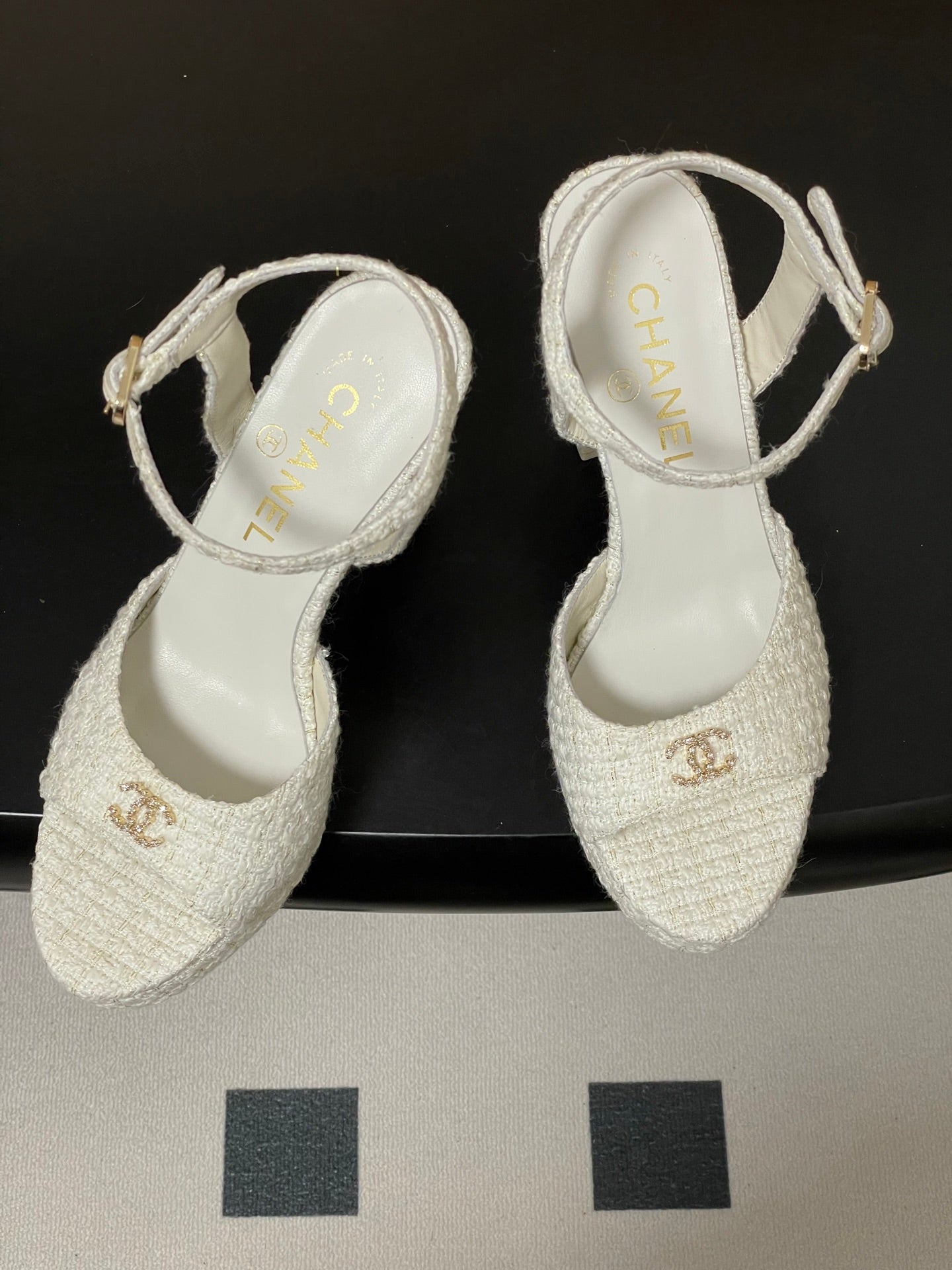 CC 26SS Platform Sandals 120mm White Double C Tweed 632569