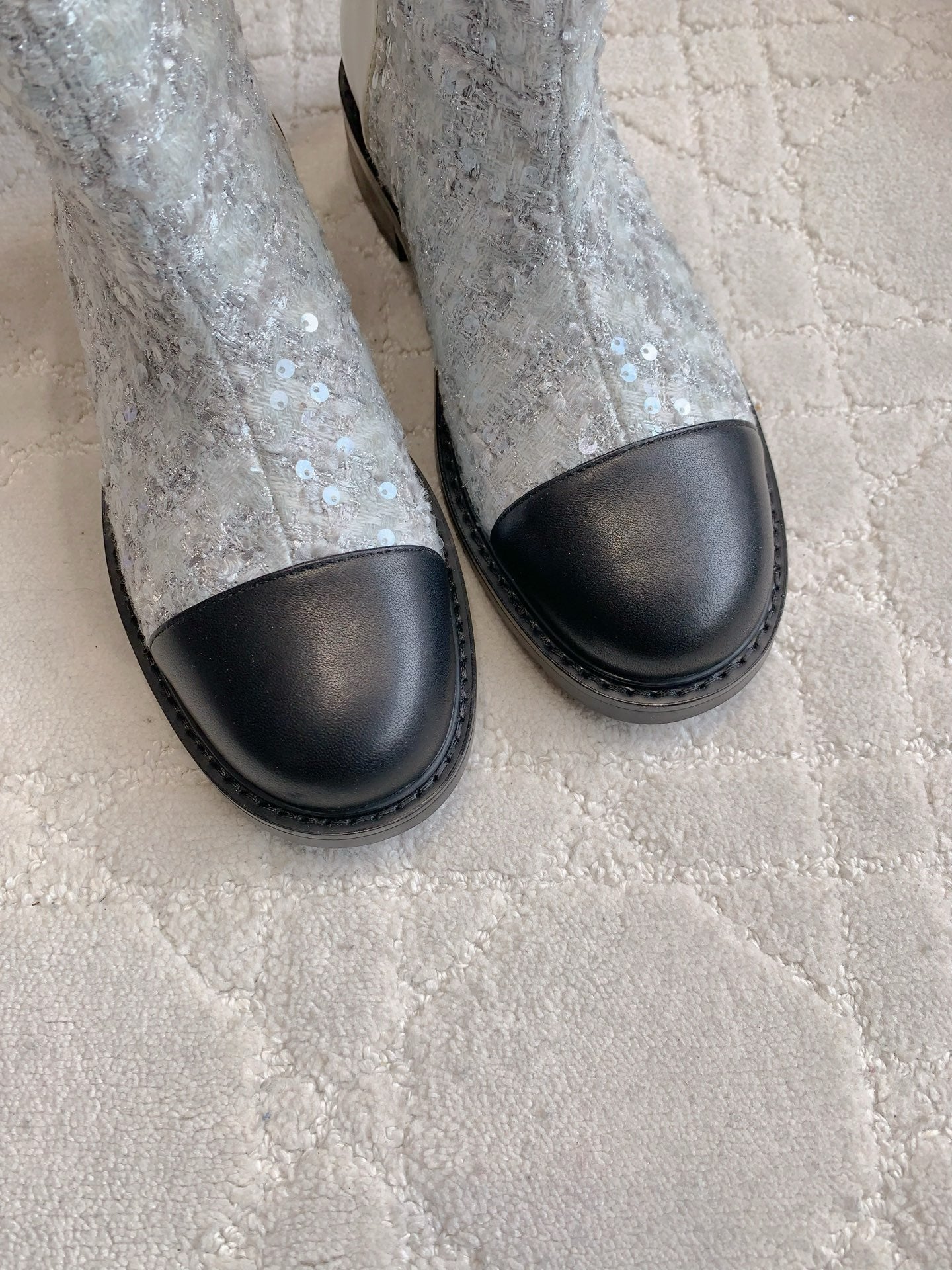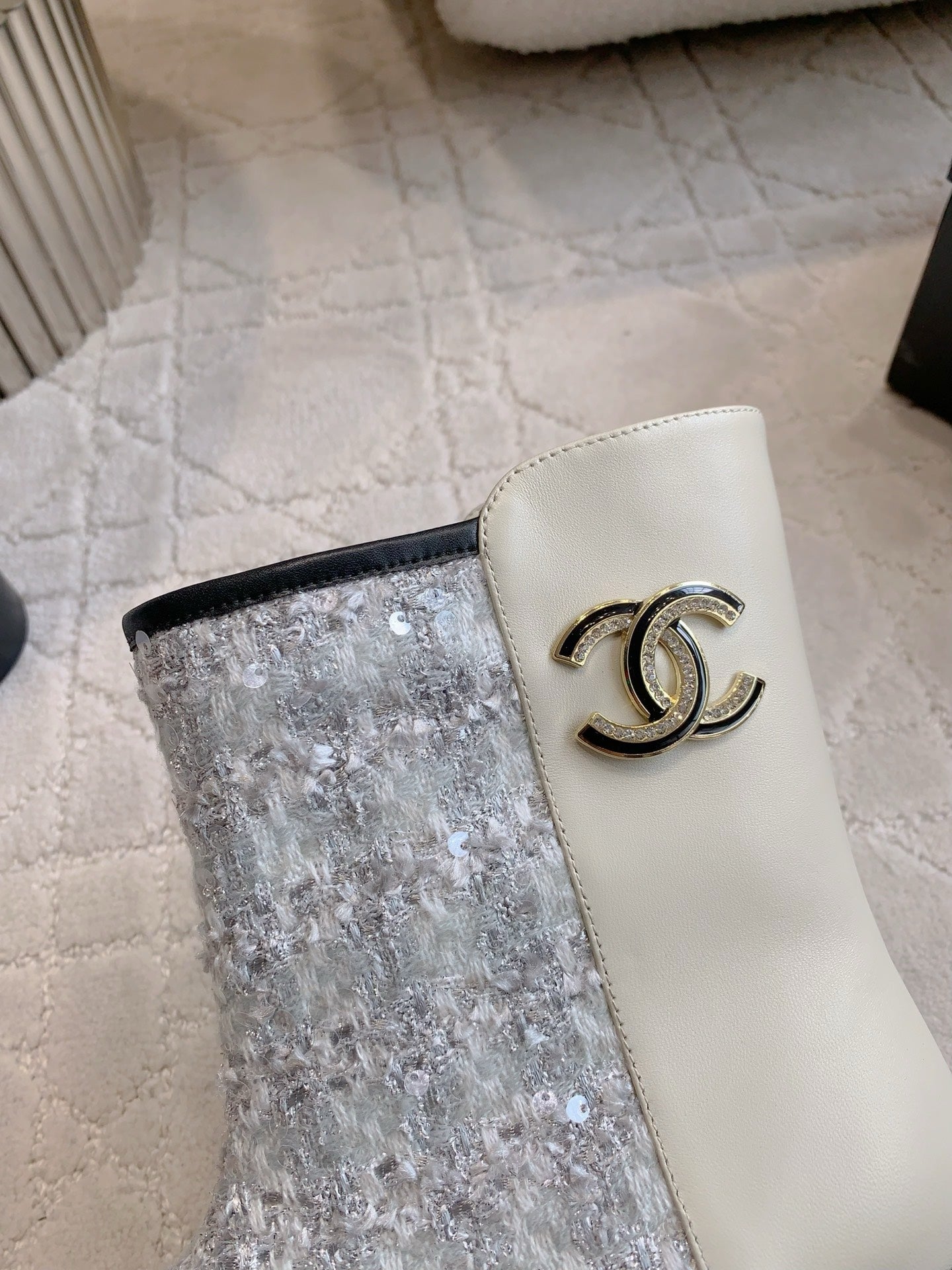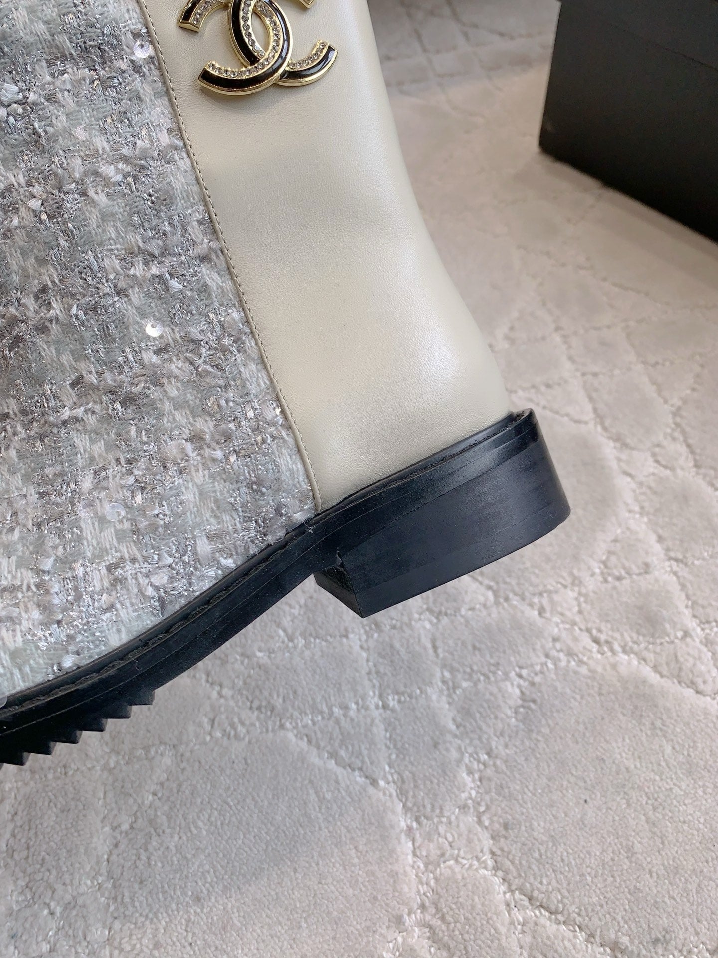 CC Ankle Boot 30mm Slight Beige Cowhide Sliver Glitter 464578