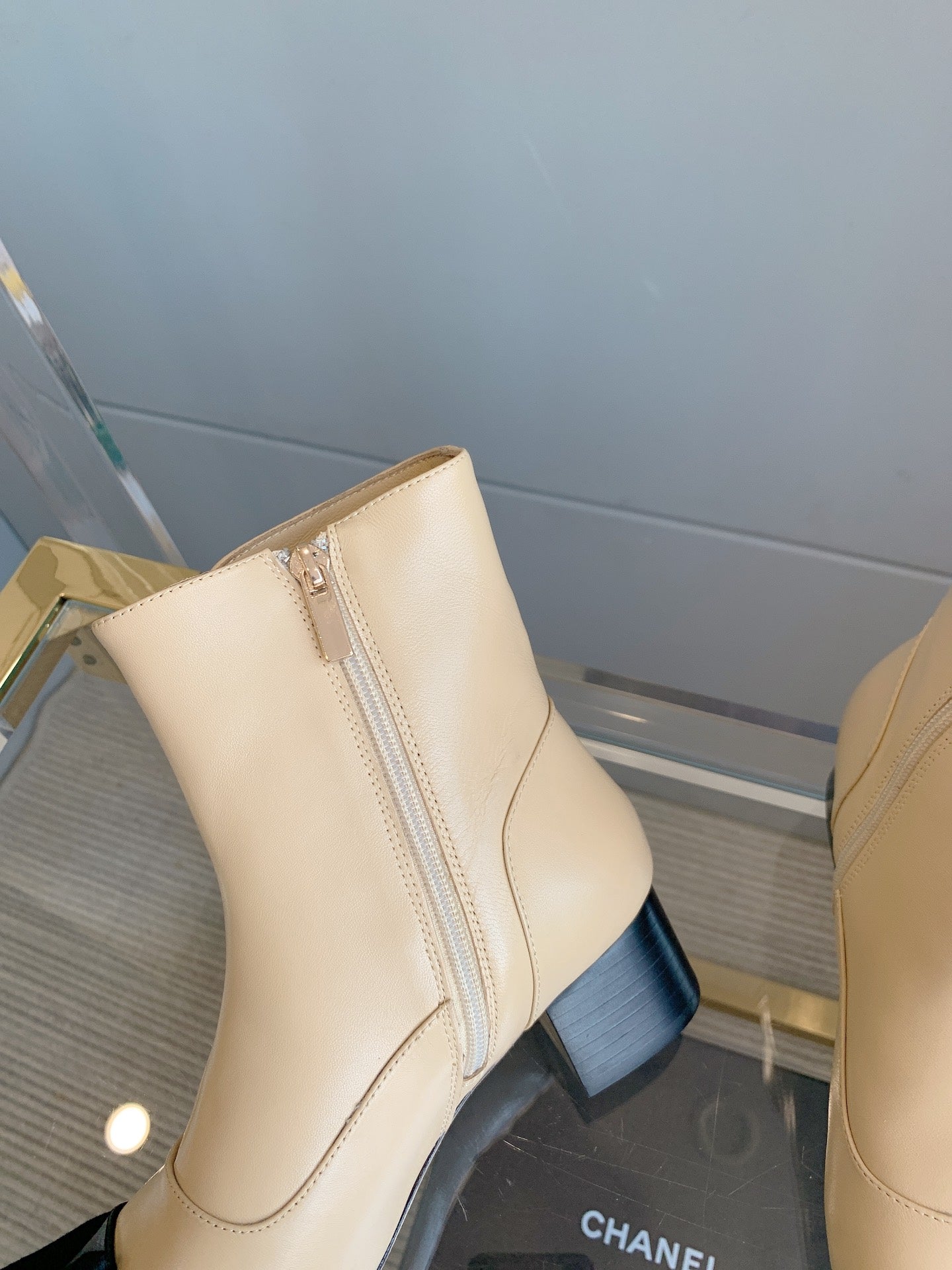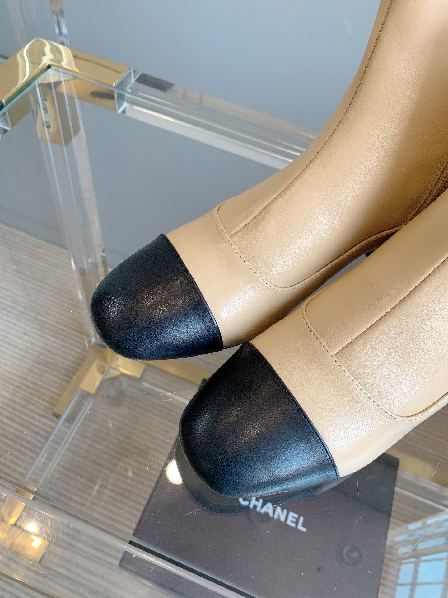 CC Ankle Boots Block Heel 60mm Beige Black Cowhide 464568