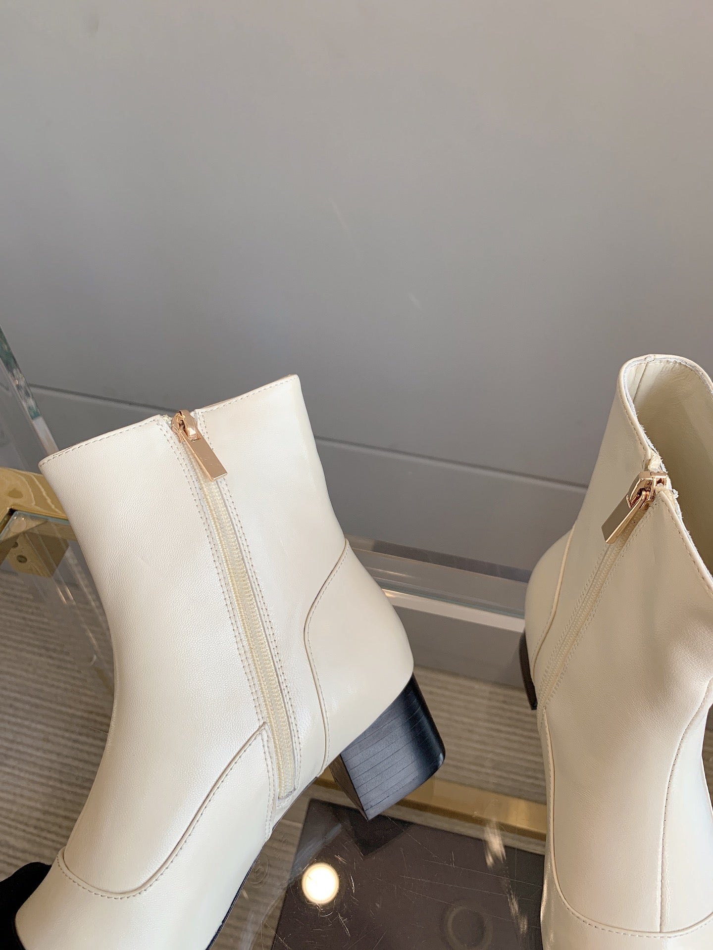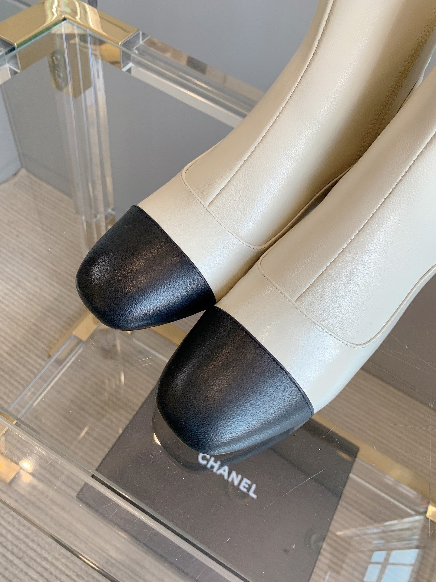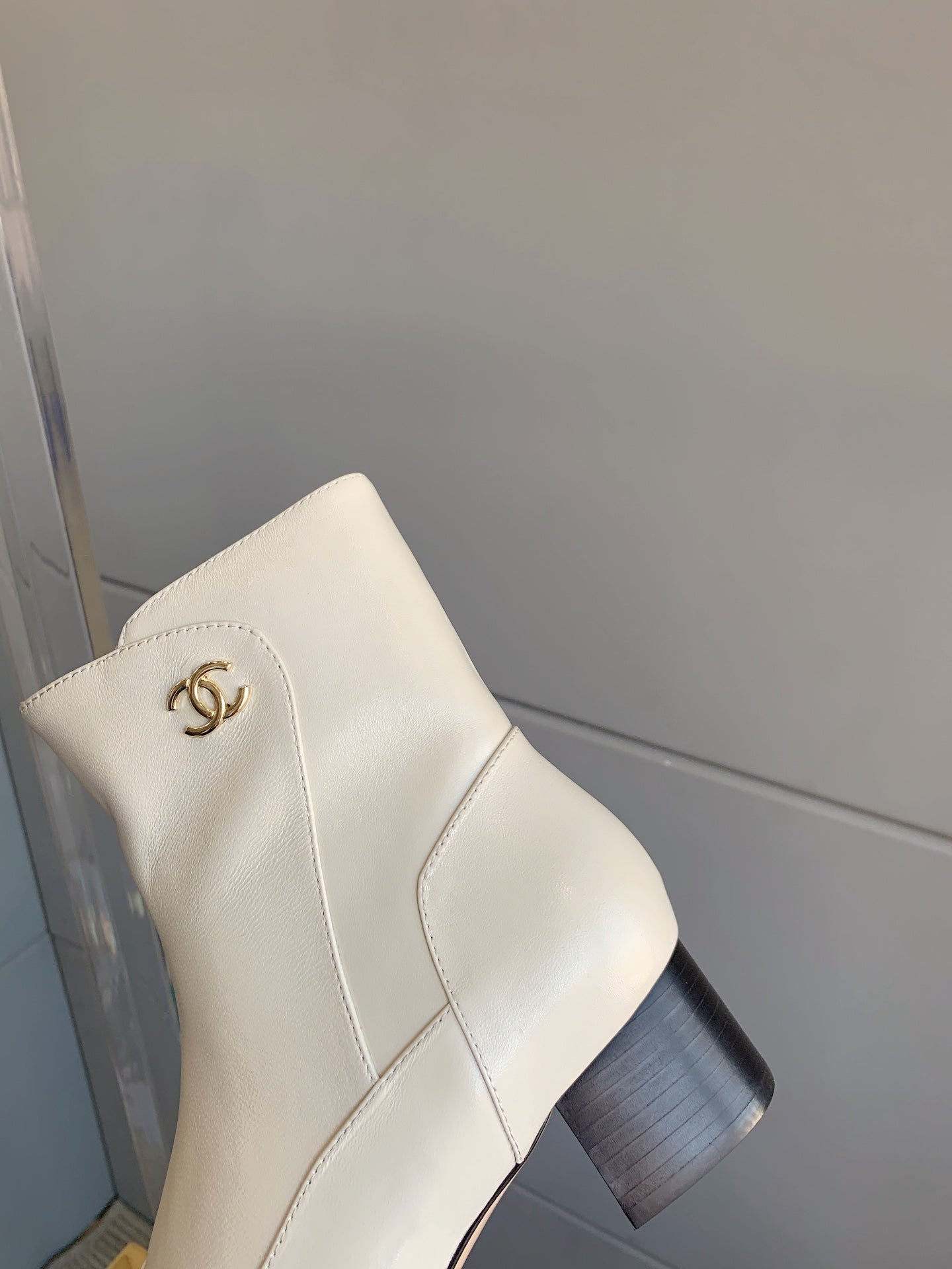 CC Ankle Boots Block Heel 60mm White Black Cowhide 464569