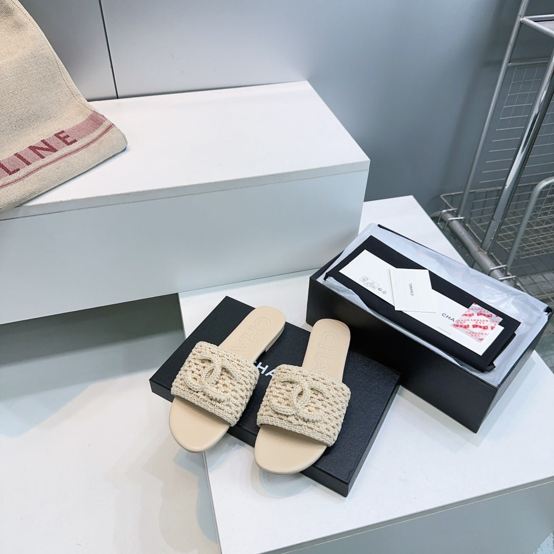 CC Flat Sandals Beige Knitted Sheepskin 628643