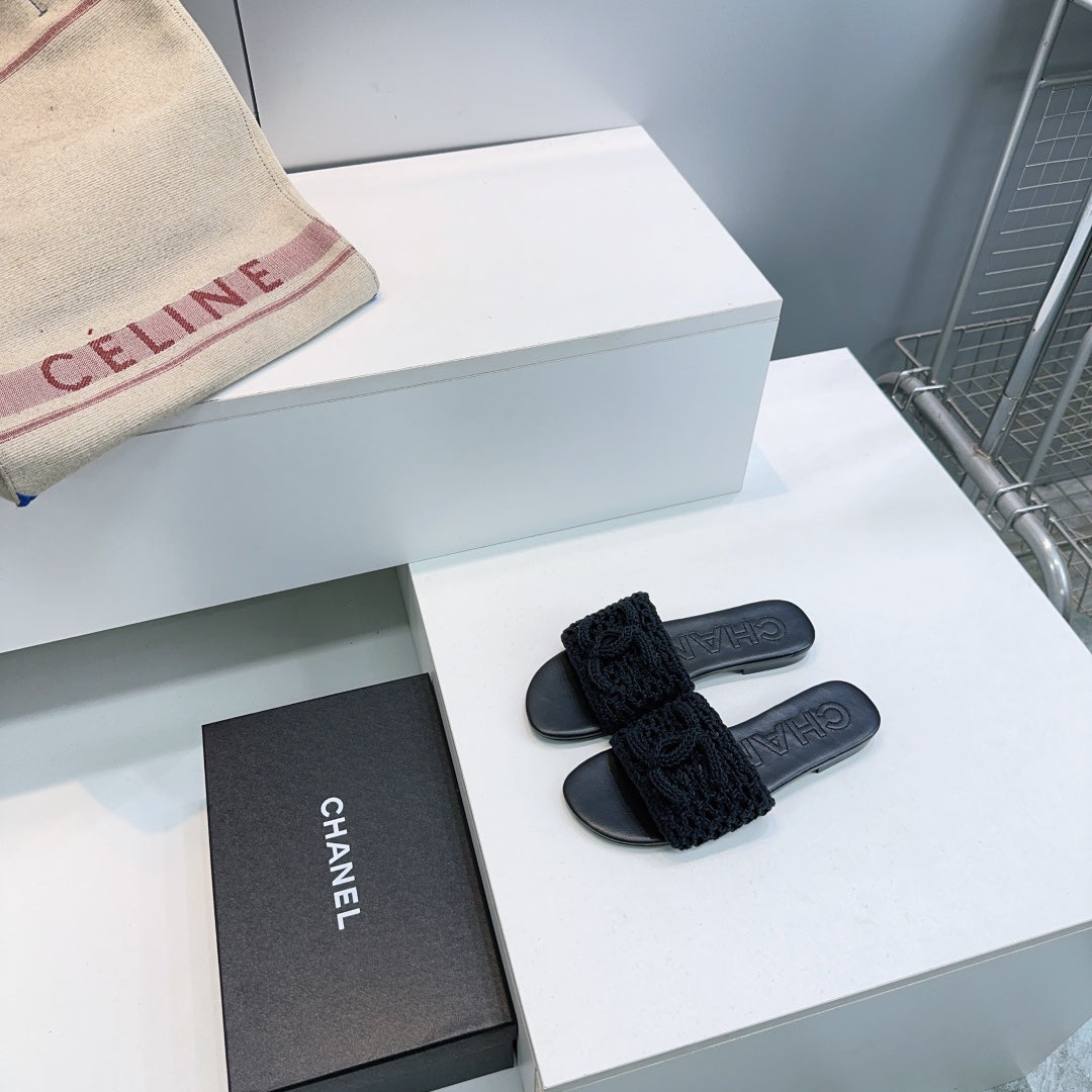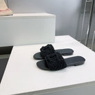 CC Flat Sandals Black Knitted Sheepskin 628641
