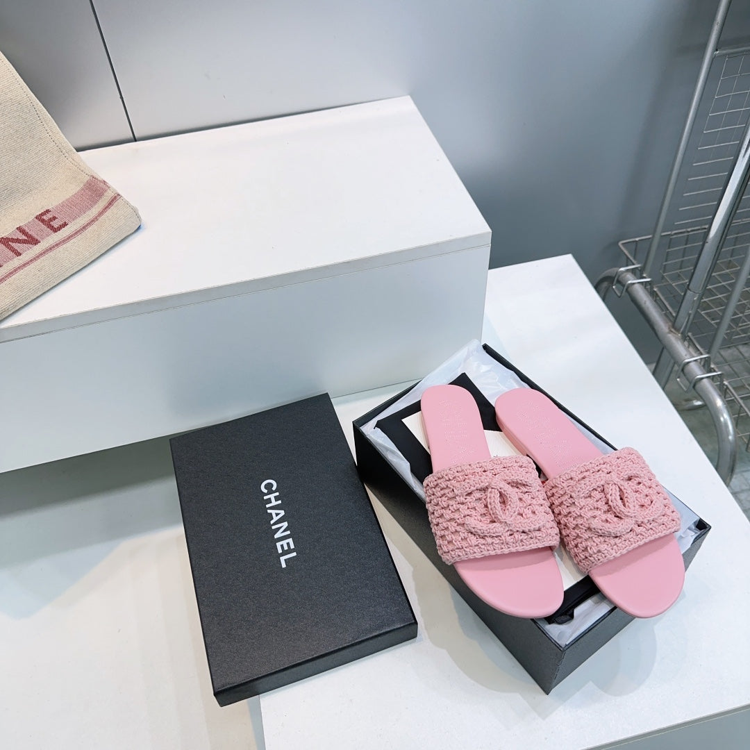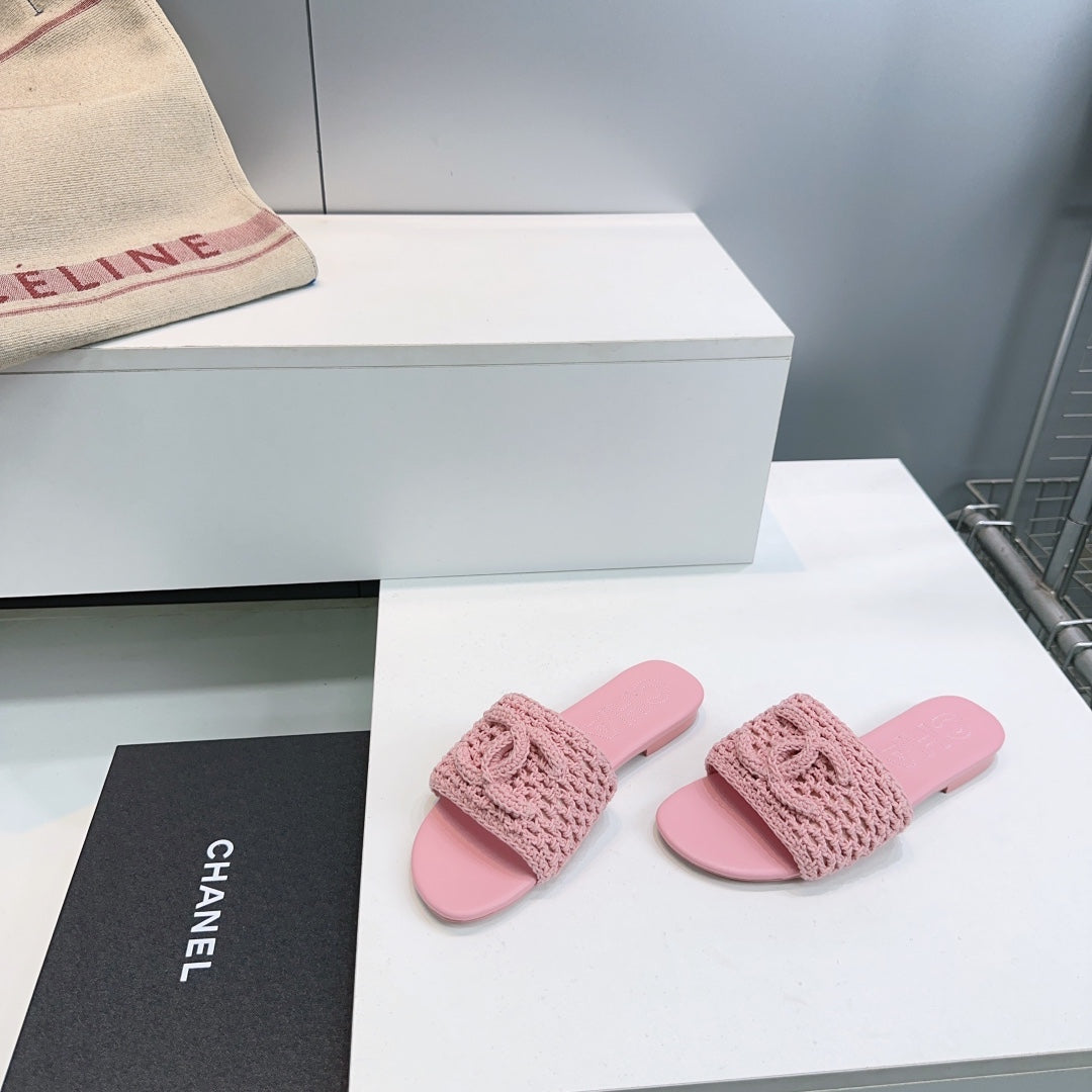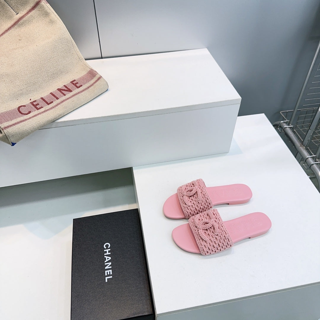 CC Flat Sandals Pink Knitted Sheepskin 628642