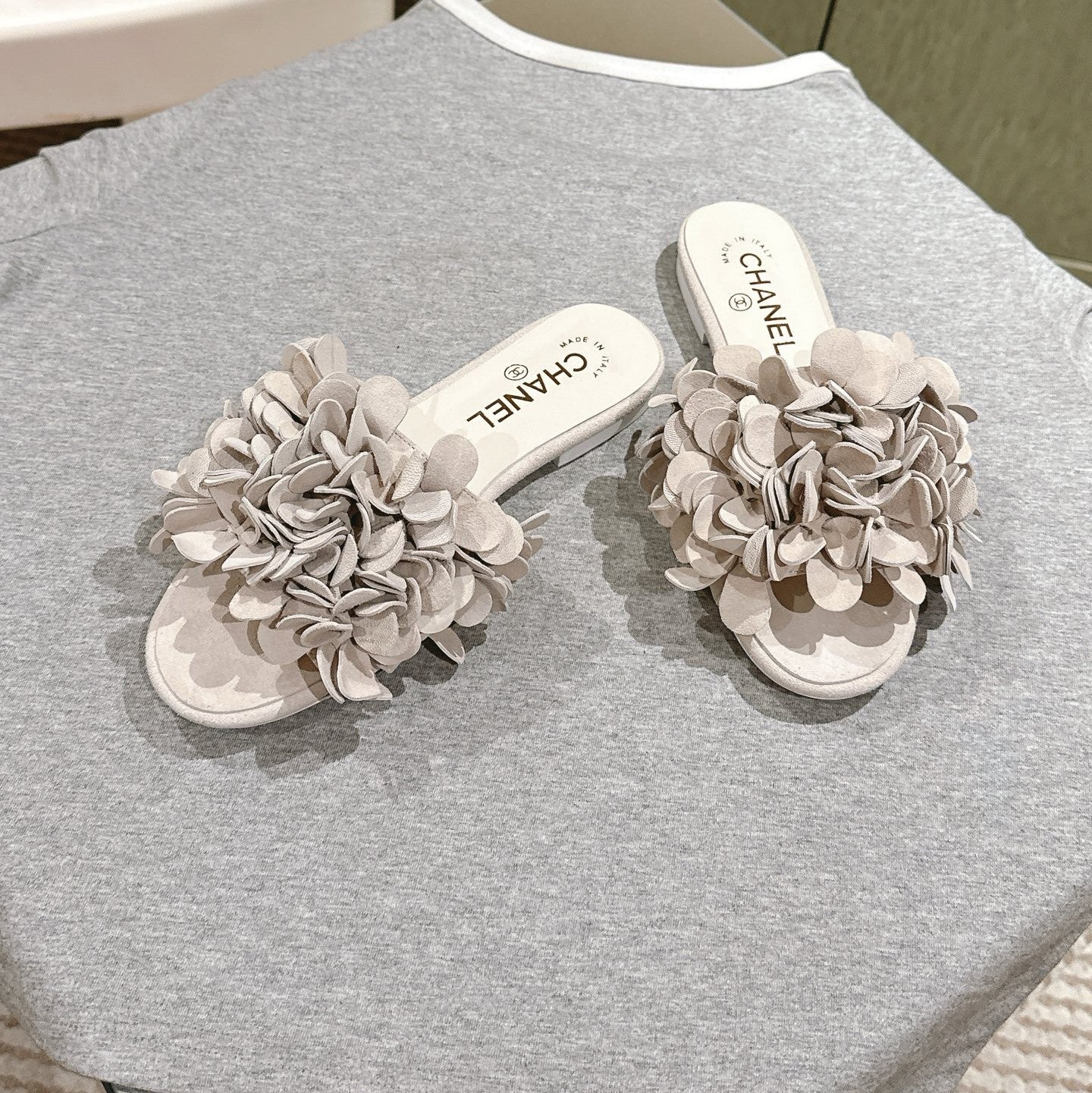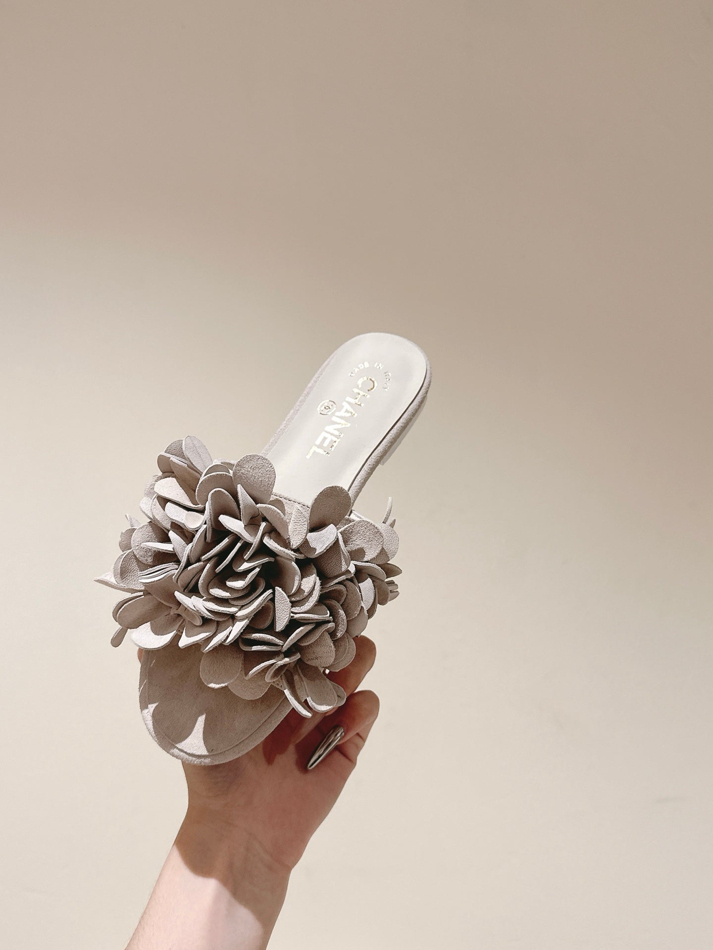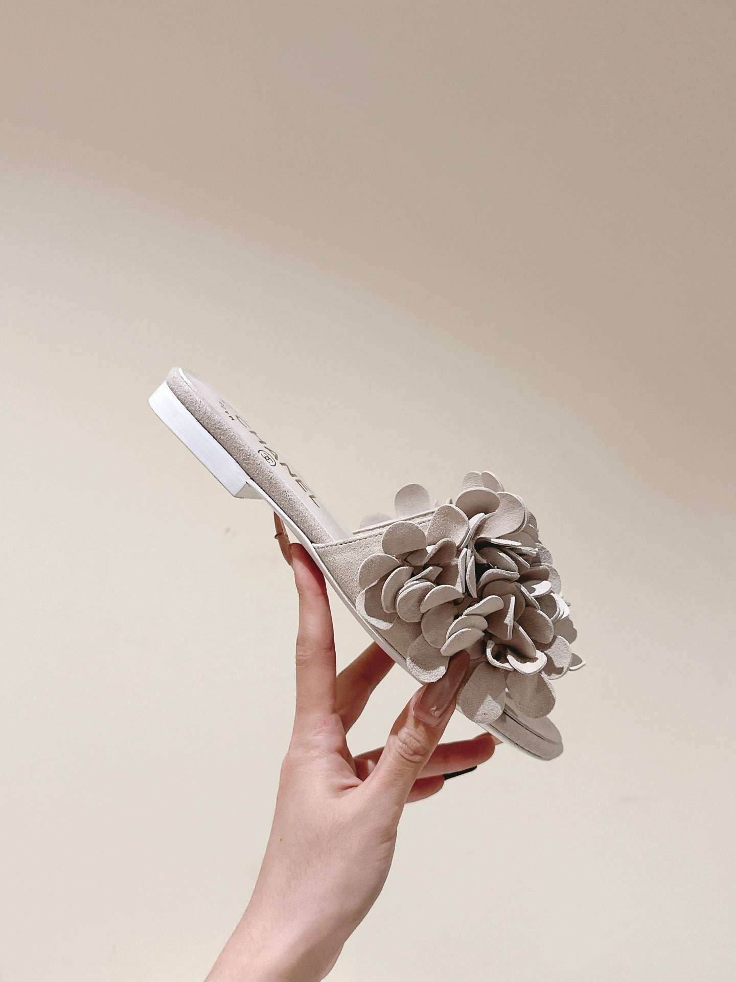 CC Floral Slide Flat Light Taupe Suede Cowhide 454280