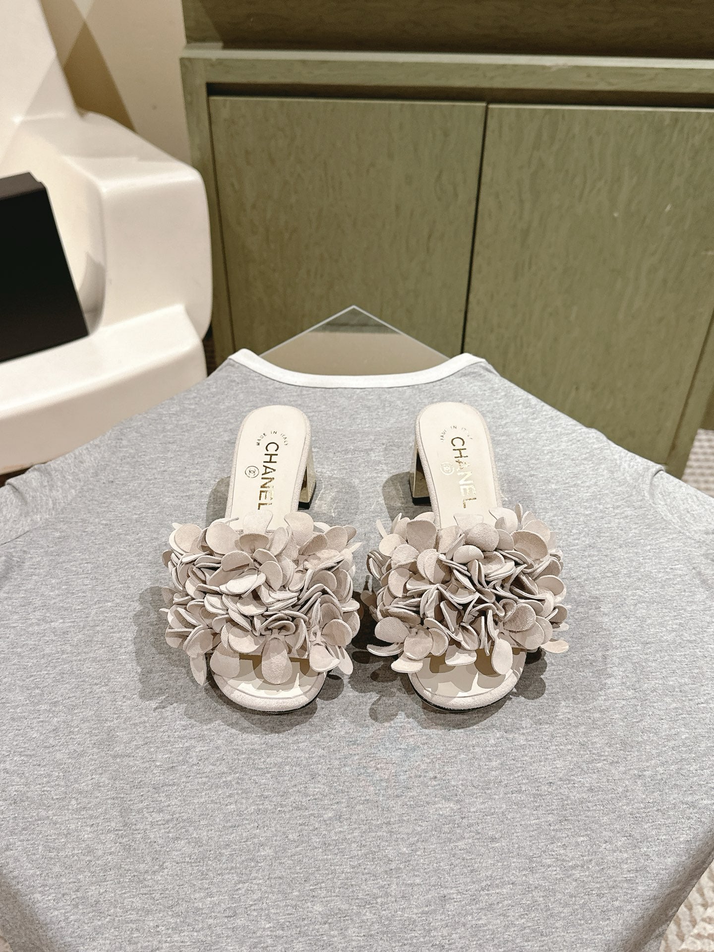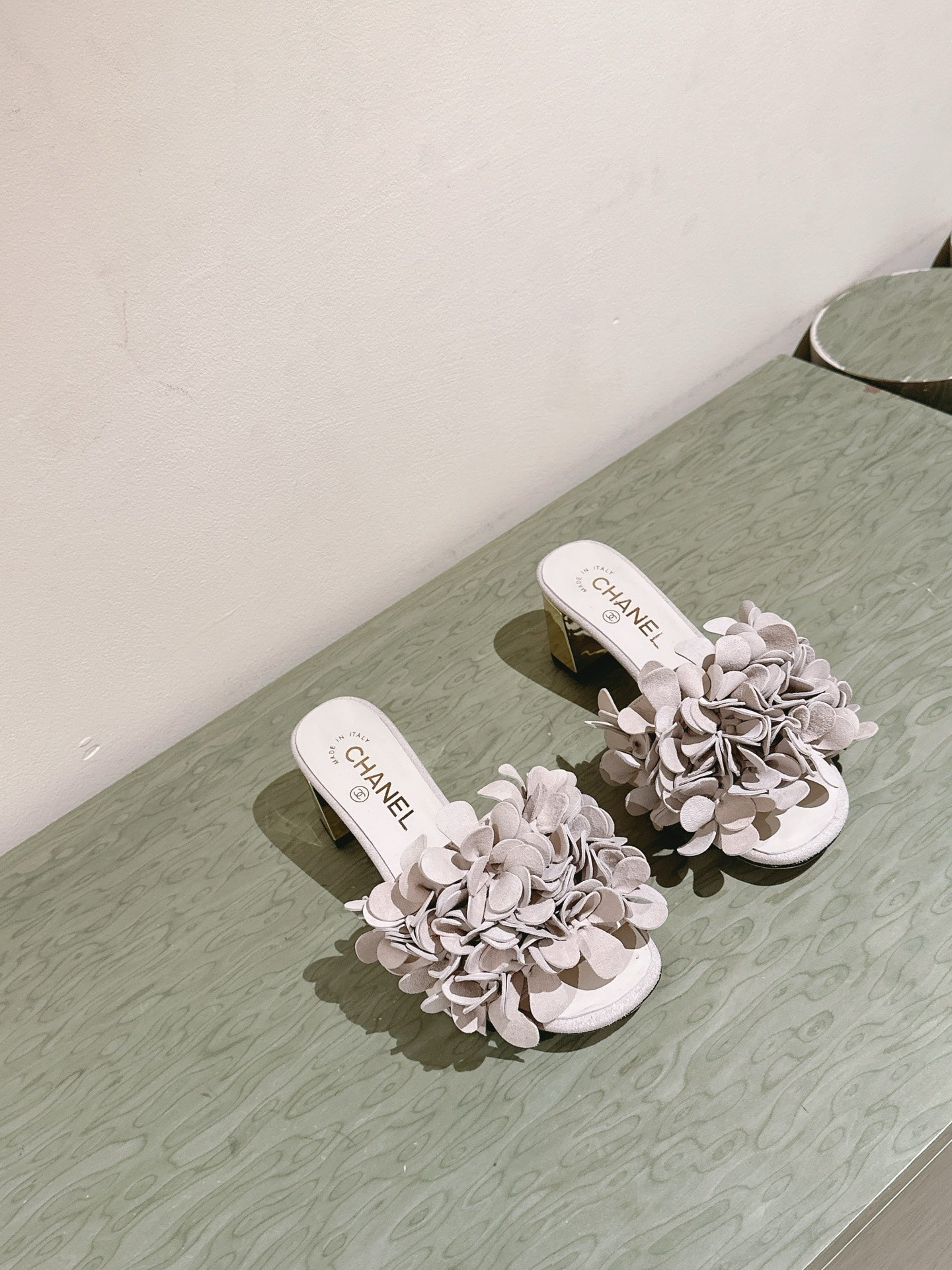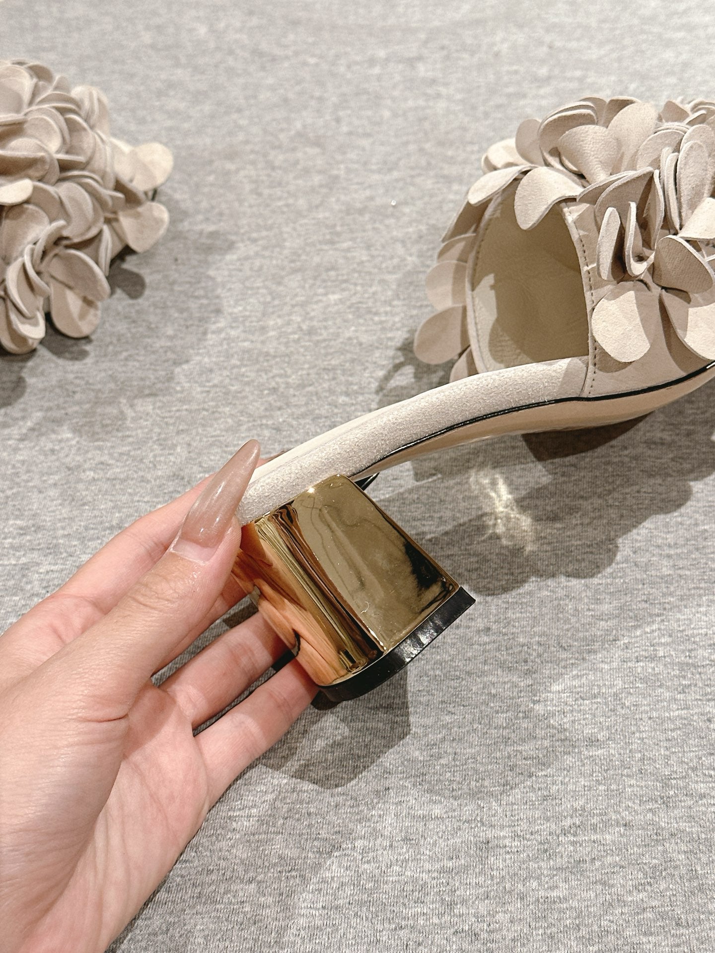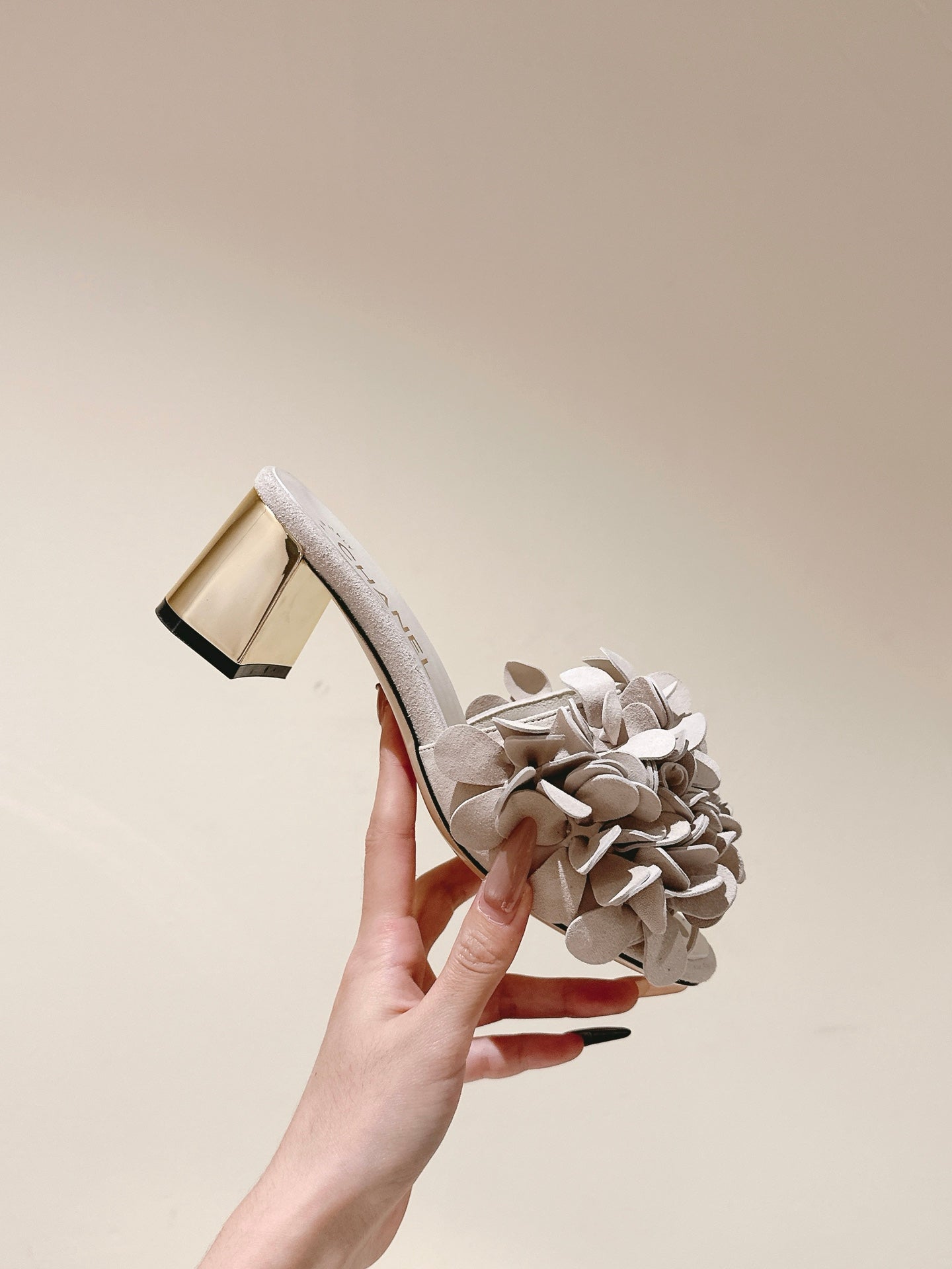 CC Floral Slide Sandals 55mm Light Taupe Suede Cowhide 454283