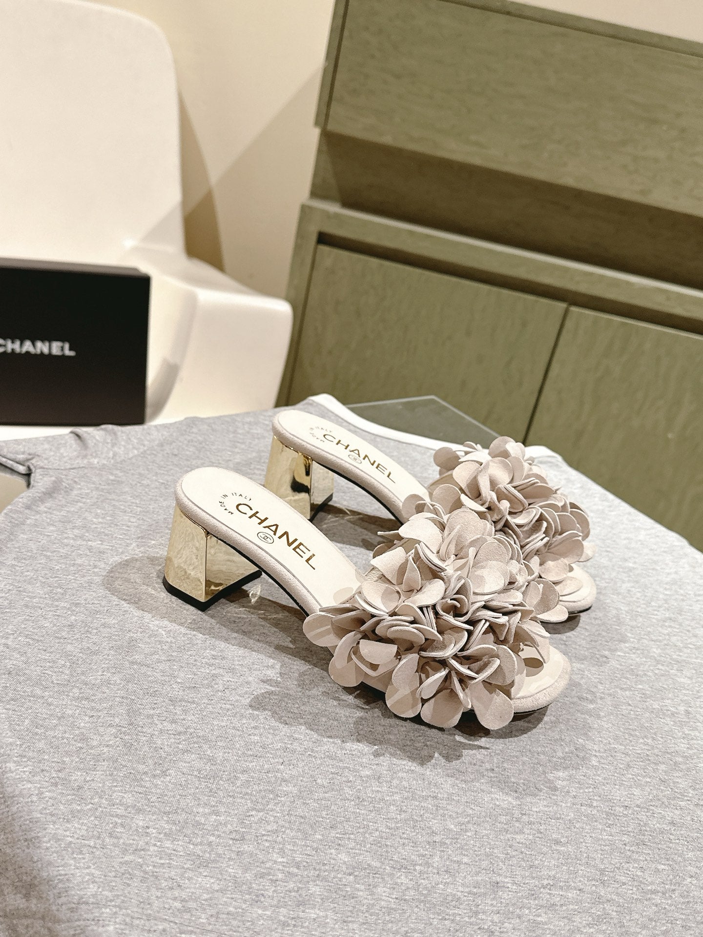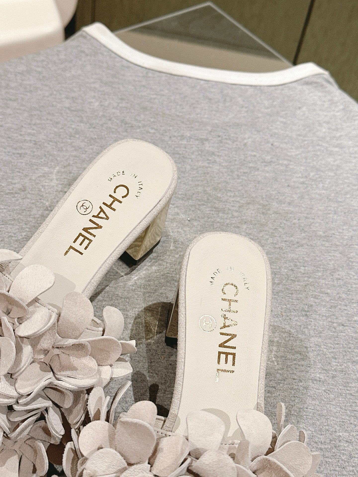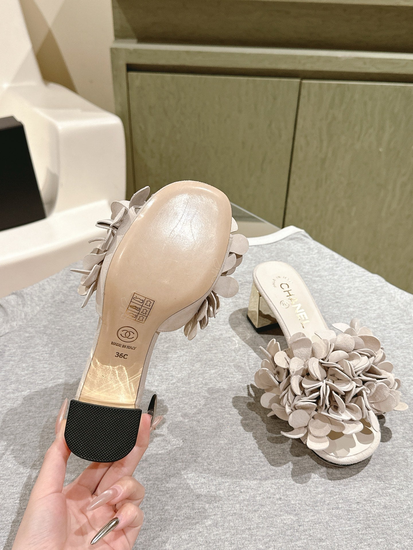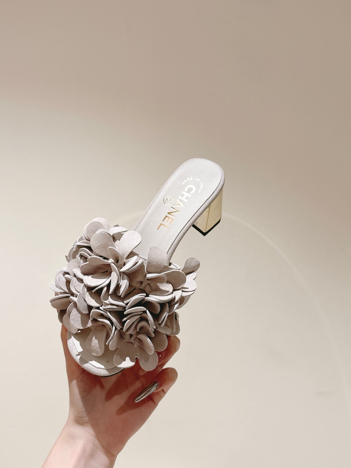 CC Floral Slide Sandals 55mm Light Taupe Suede Cowhide 454283