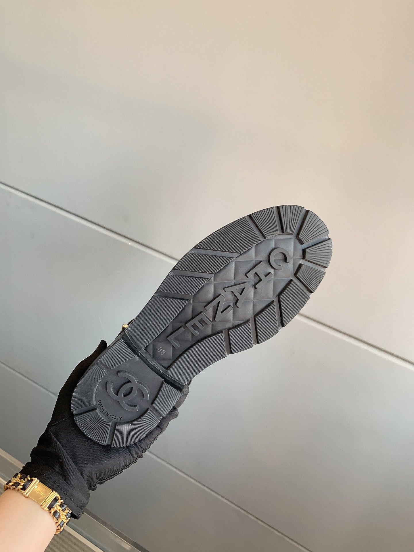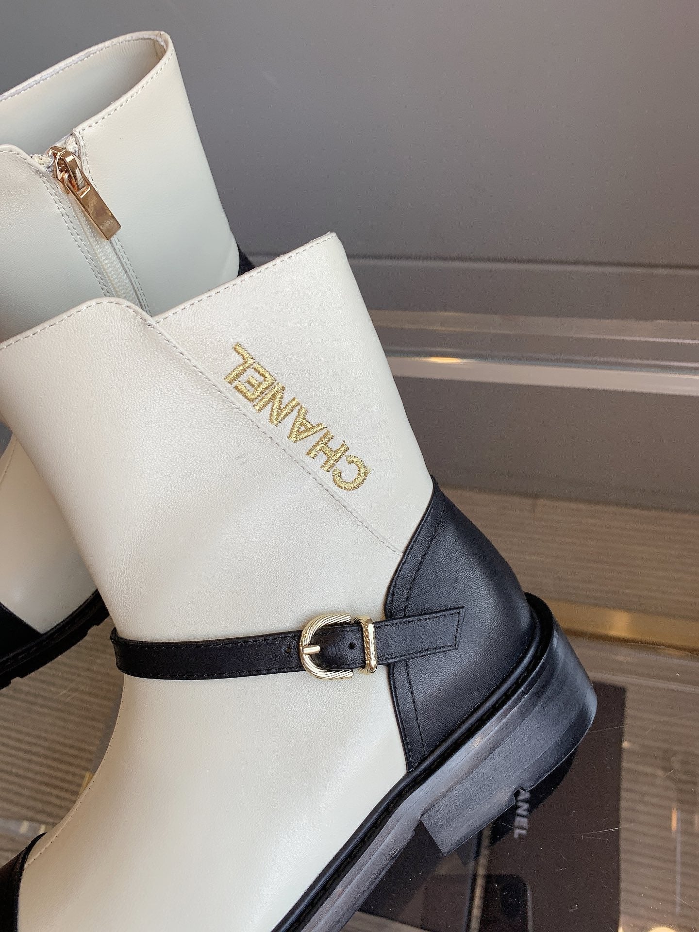 CC Front-Strap Ankle Boots 35mm Black White Sheeepskin 464553