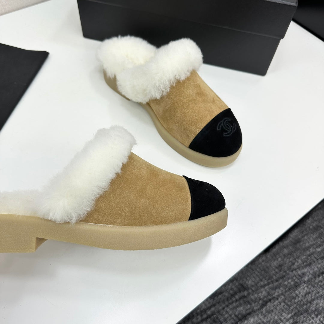 CC furry mule beige black suede and wool 532576