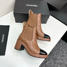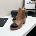 CC FW 25 Platform Ankle Boots Brown Black Patent and Quilted Leather 532622