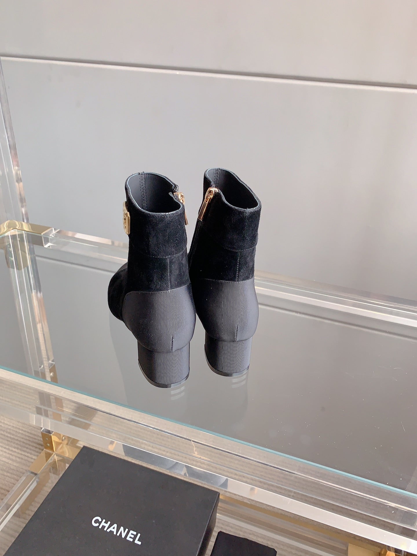 CC Low-Cut Logo Ankle Boots 50mm Black Suede Frabic 464557