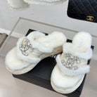 CC slipper double C rhinestone buckle white wool 512052