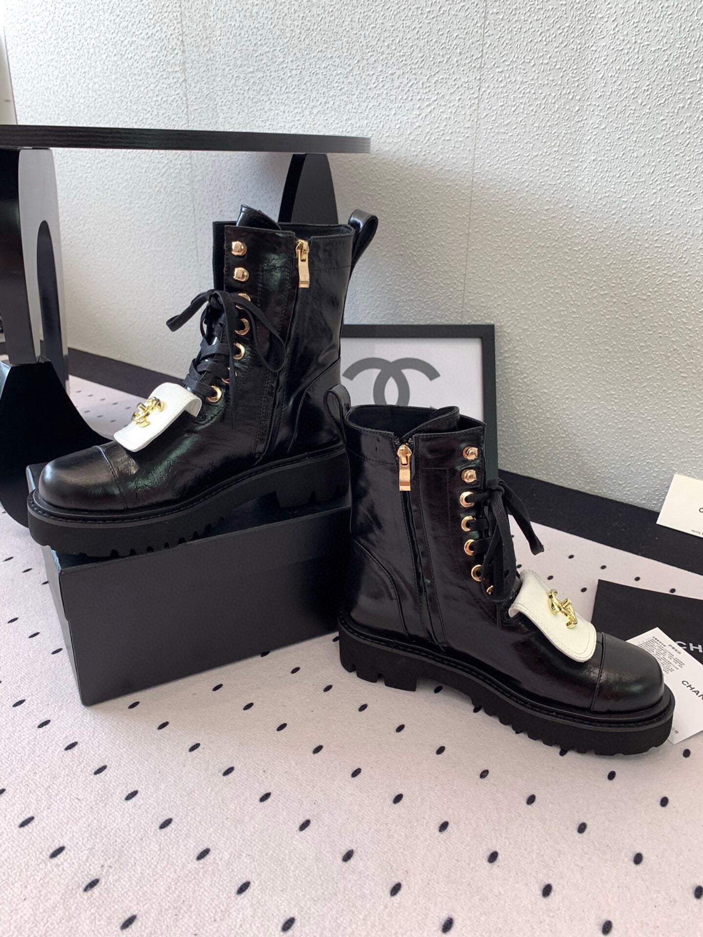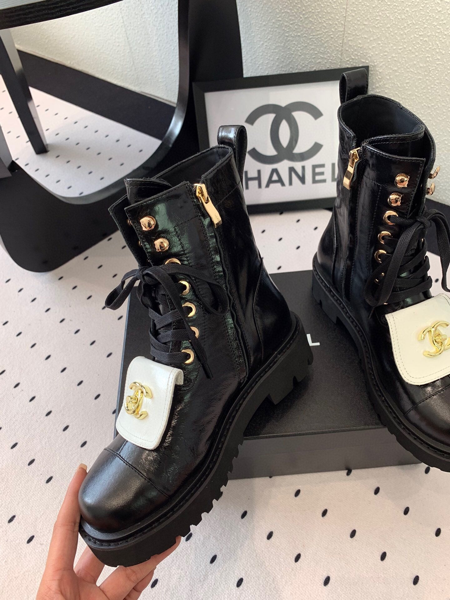 CC Split Toe Ankle Boot 40mm White Black Sheepskin Rubber GHW 432517