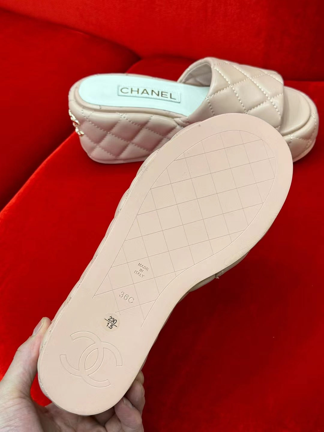 CC WEDGE HEEL BEIGE CREAM LAMBSKIN