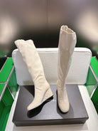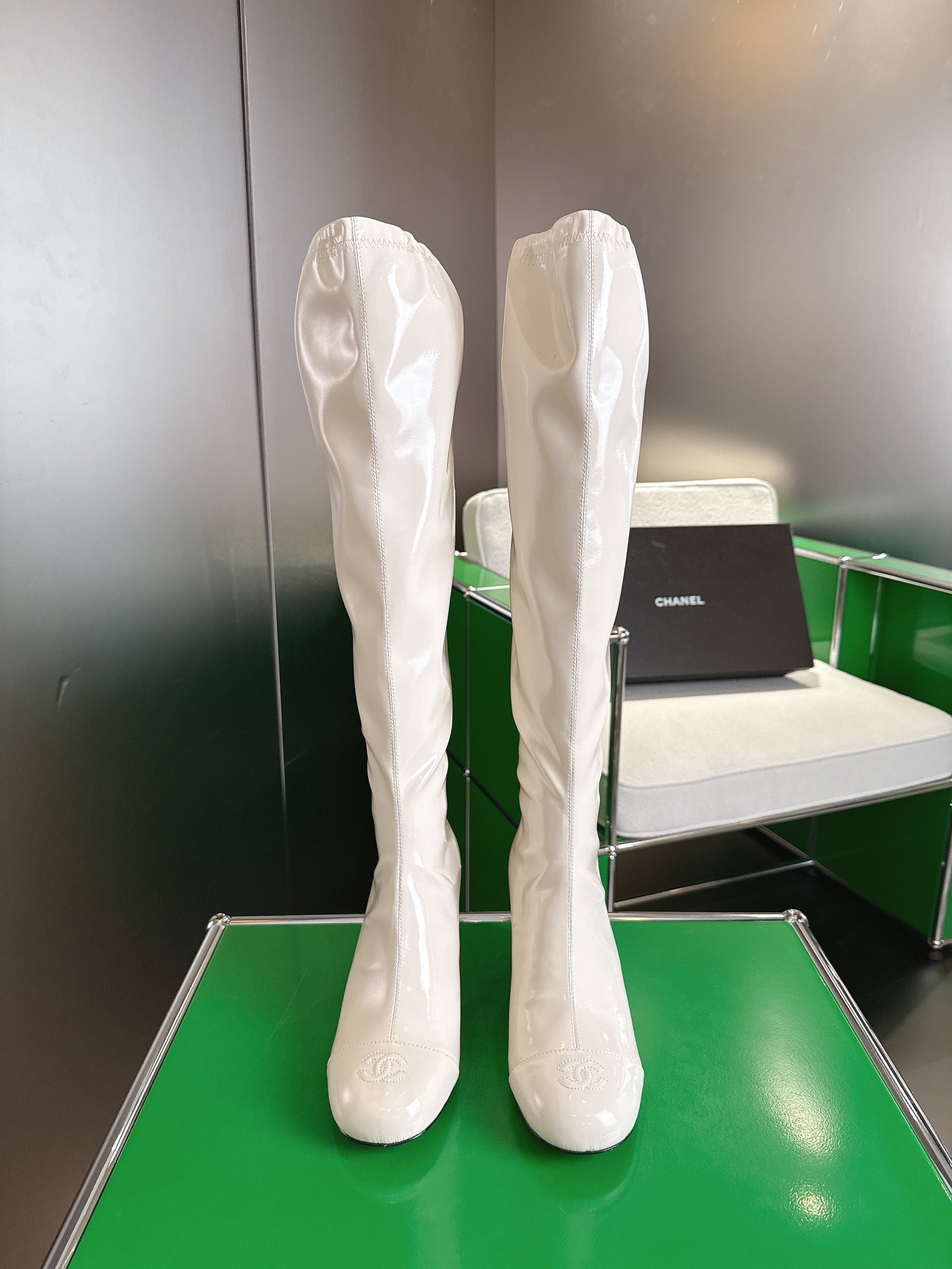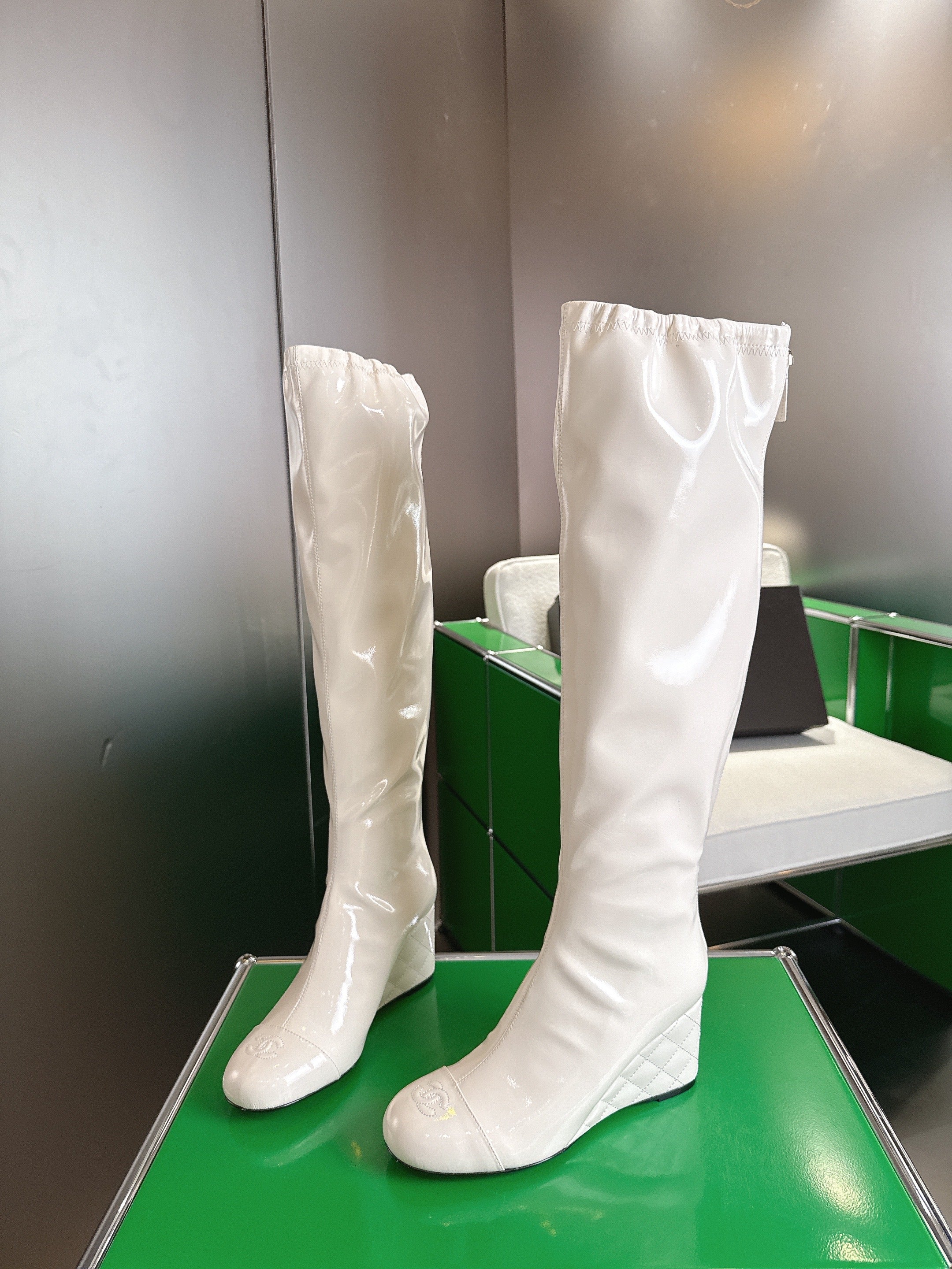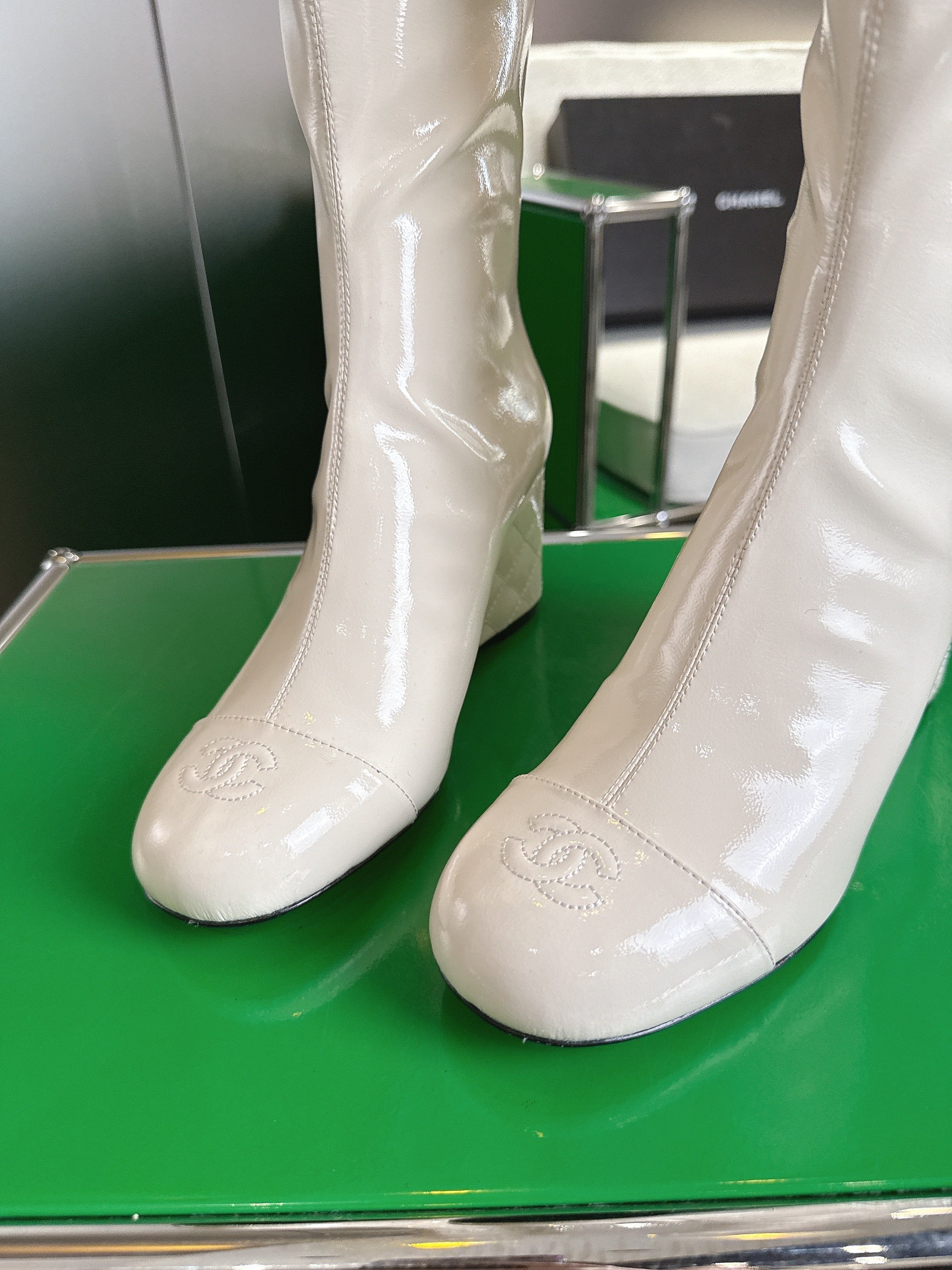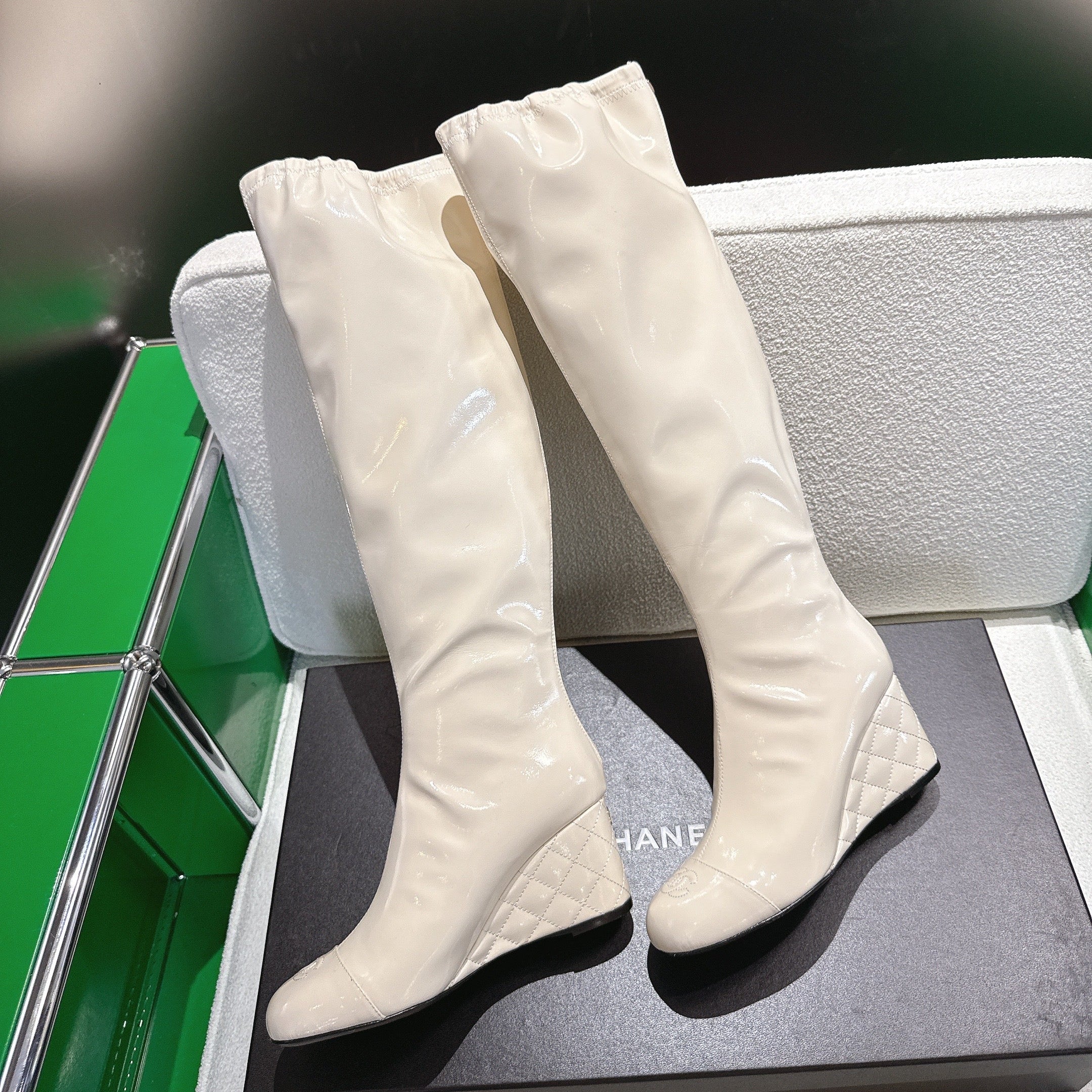 Chanel High-Top Boots Platform Heel 7cm Cream Glossy Leather 507533