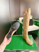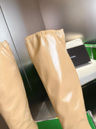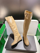 Chanel High-Top Boots Platform Heel 7cm Beige Glossy Leather 507535
