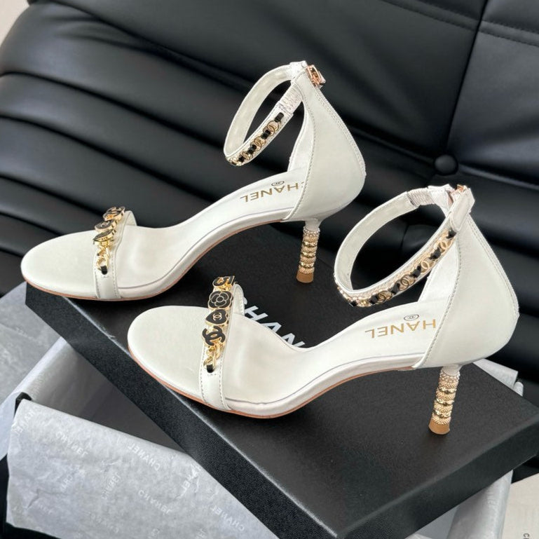 HIGH HEEL 7.5 MM SANDAL IN WHITE SHEEPSKIN WITH STICKERS