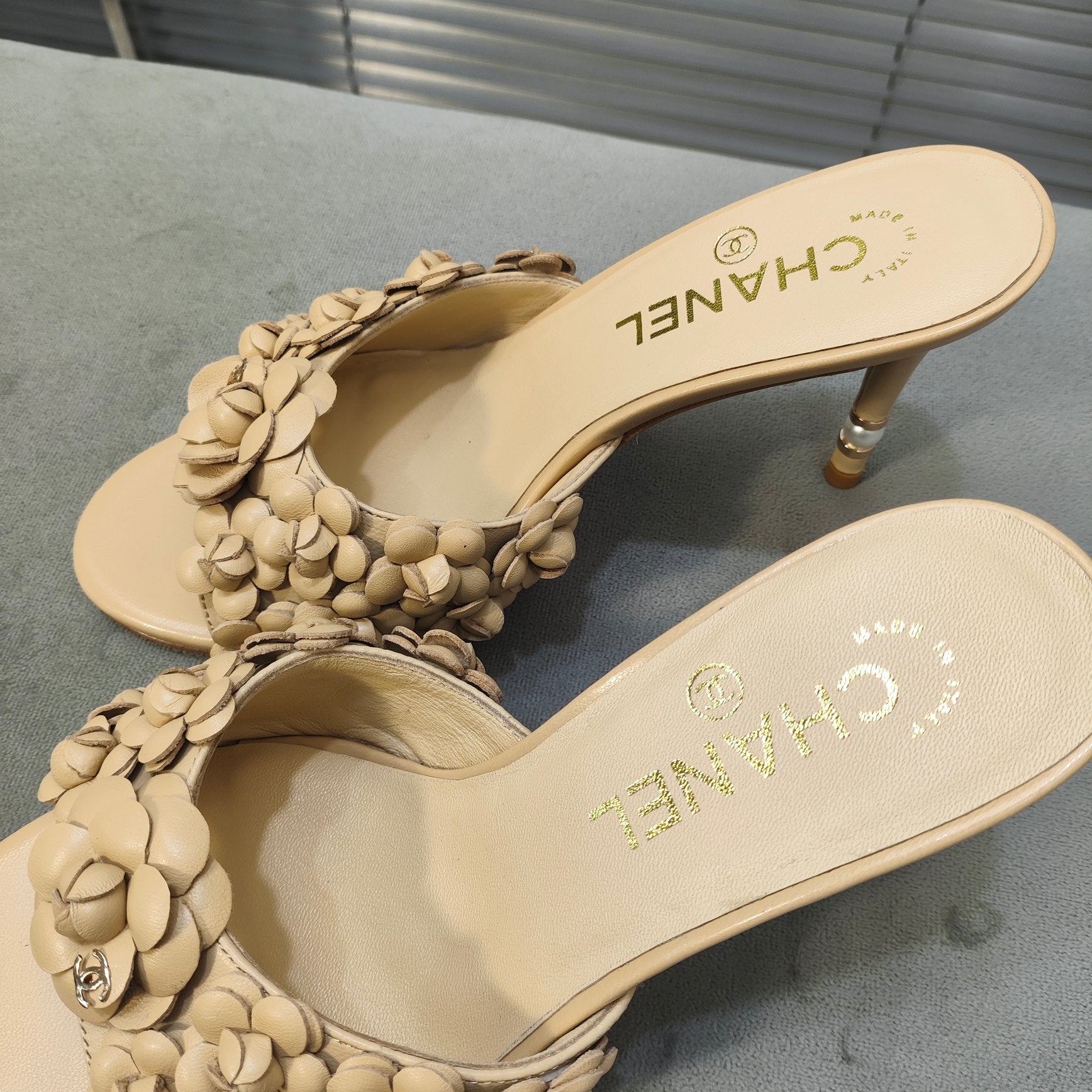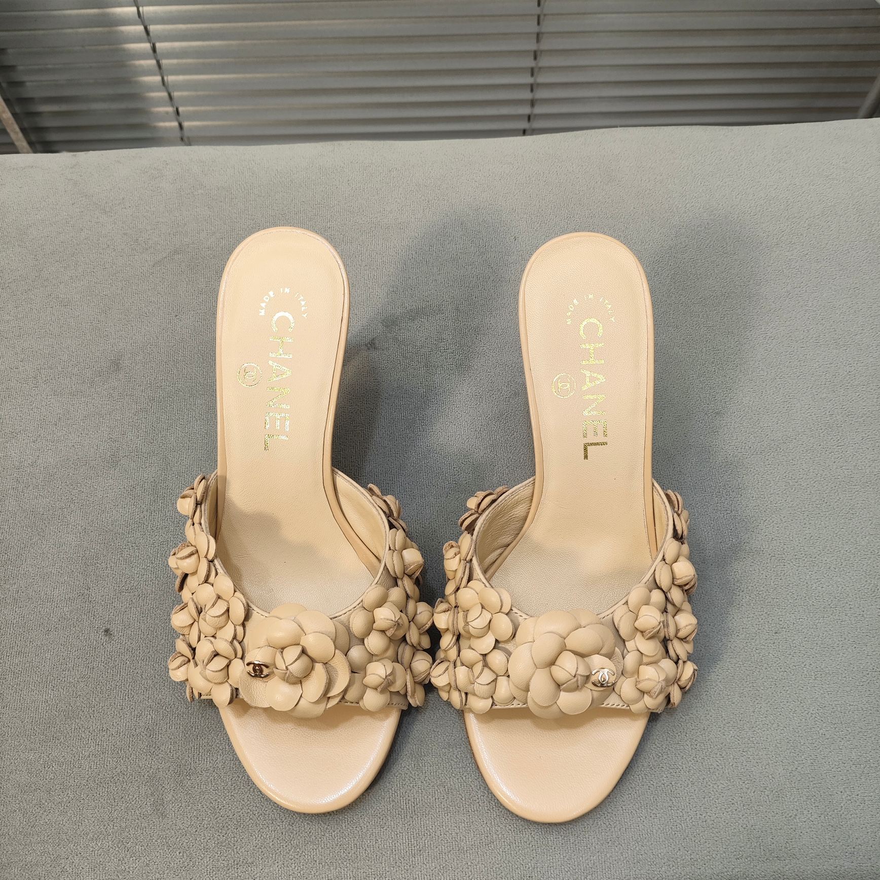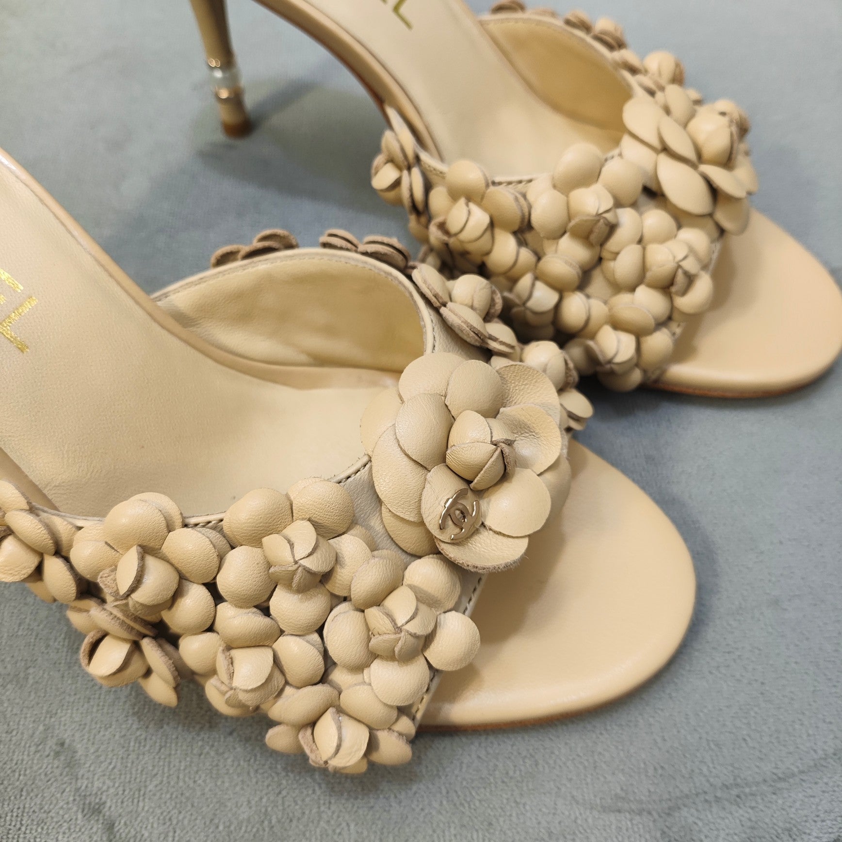 mule sandal 80 beige calfskin flower