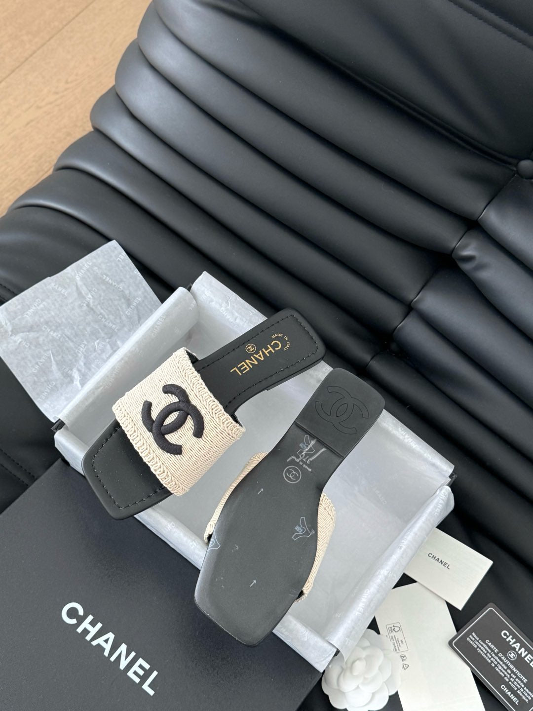 WOVEN SLIDE IN RAFFIA AND BLACK LAMBSKIN