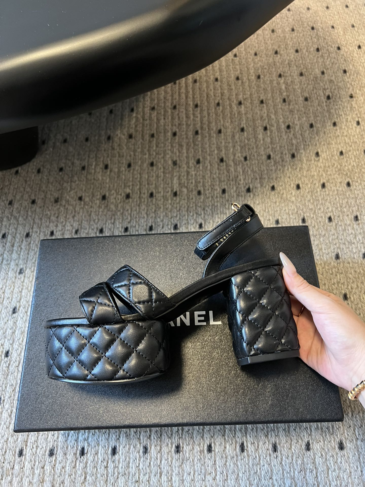 CC 25SS Platform Sandals 8.5cm Black Sheepskin 319628
