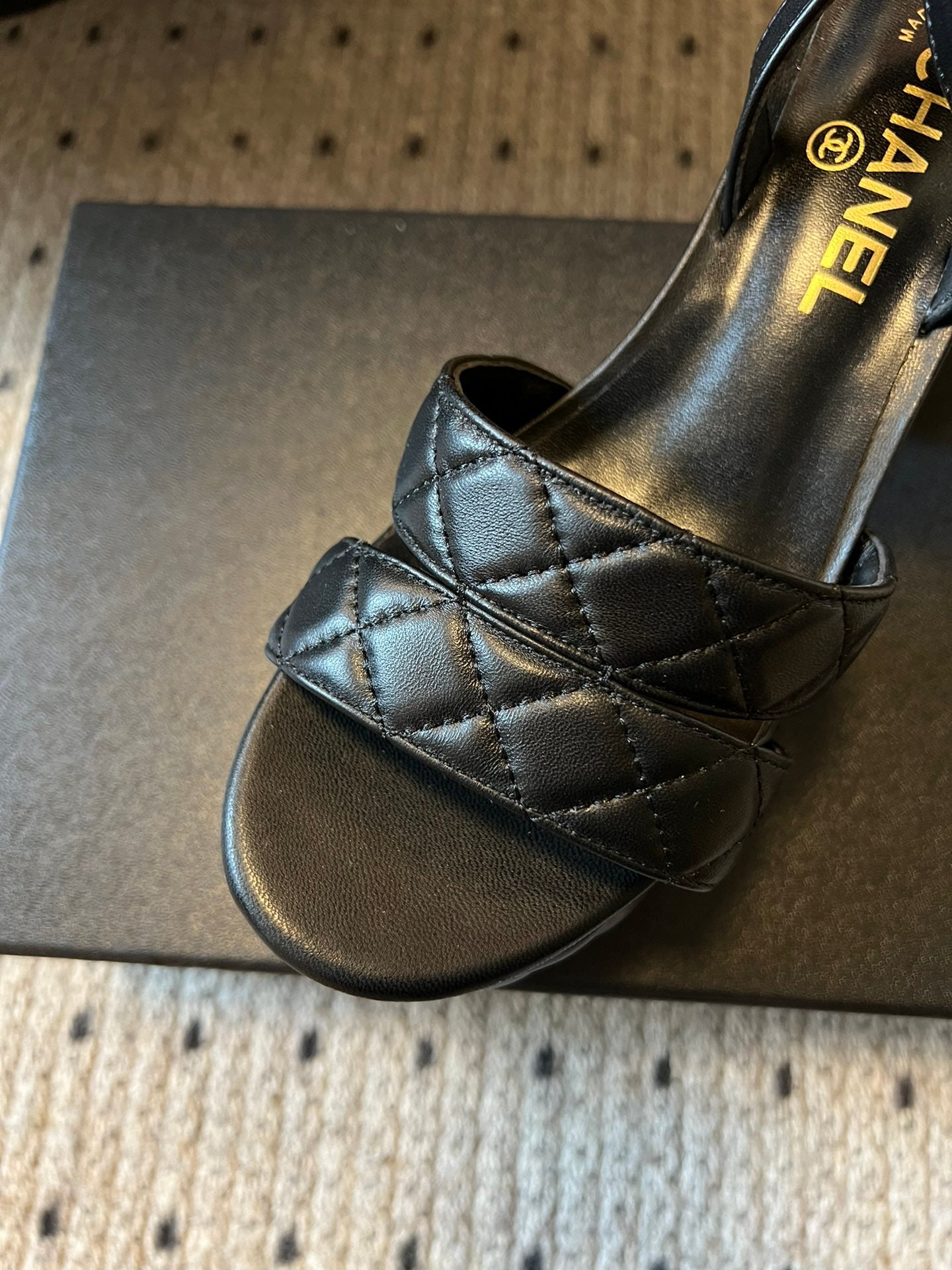 CC 25SS Honey Slippers 5cm Black Lambskin 319636