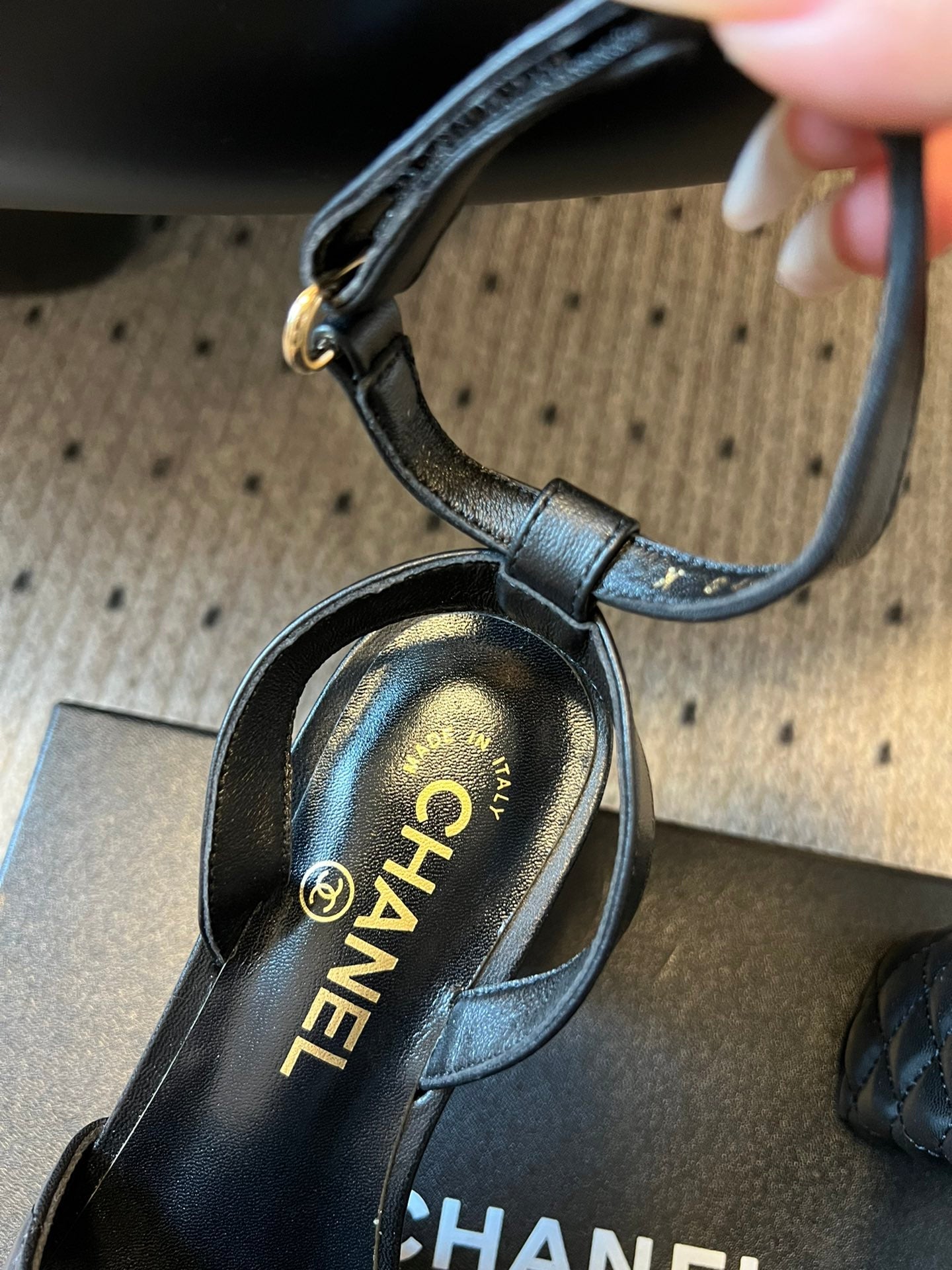 CC 25SS Thong Sandal 2cm Leather Chain Black Lambskin 319700