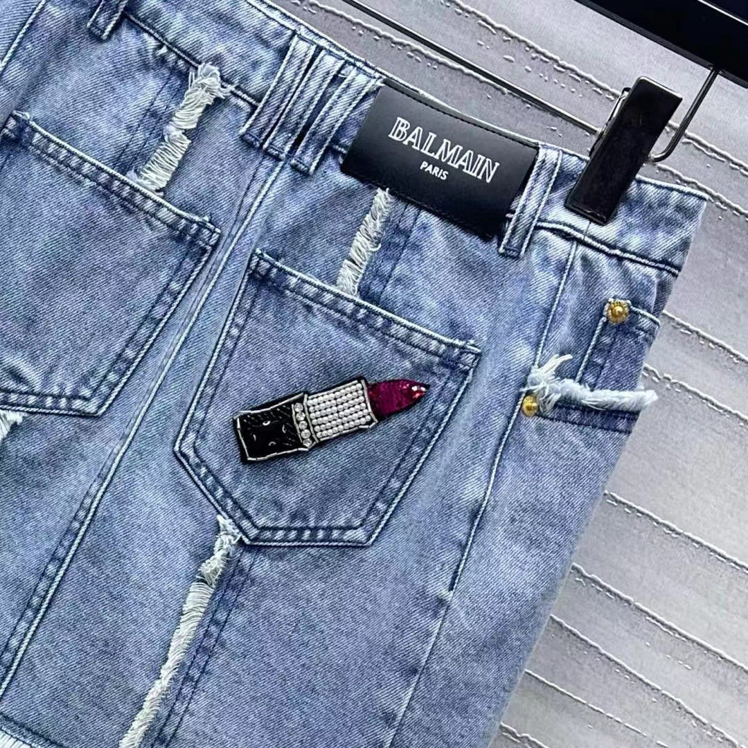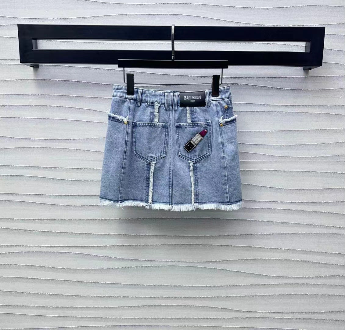 Balmain Skirt Blue Cotton Polyester