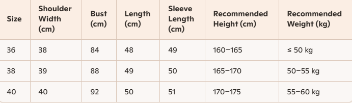 - Size : 36,38,40