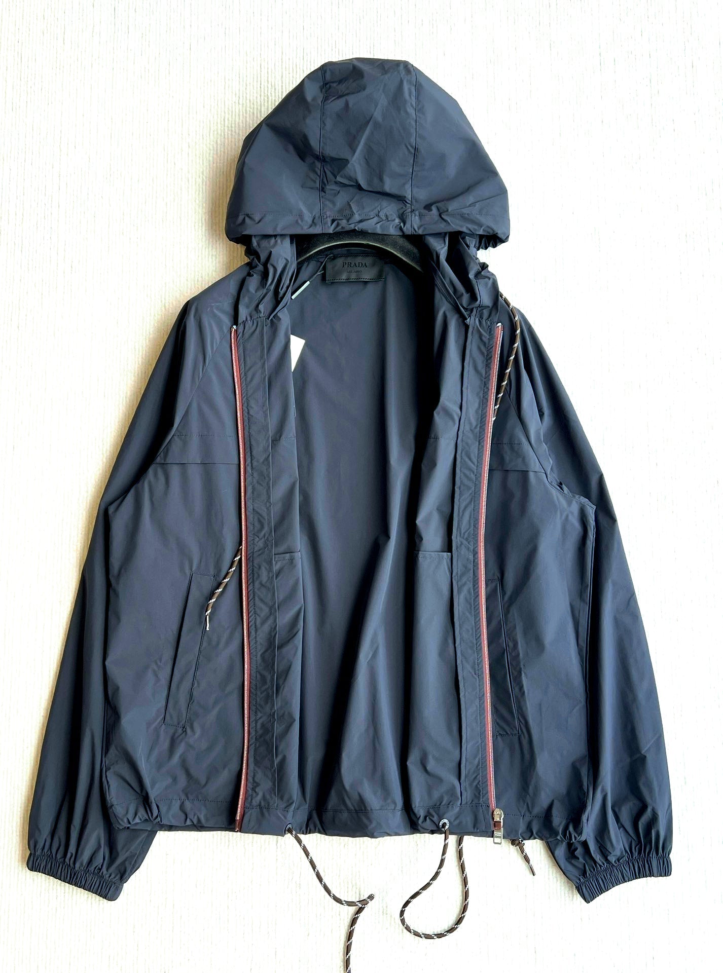 Prada 25 Hooded Jacket Navy Blue Polyester