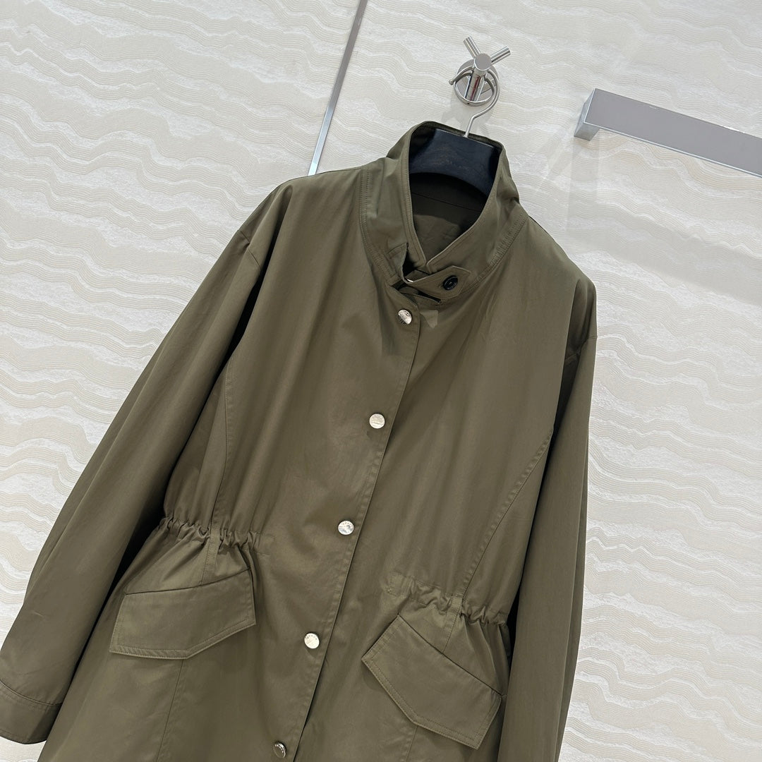 Prada 25 Windbreaker Coat Khaki Green Cotton