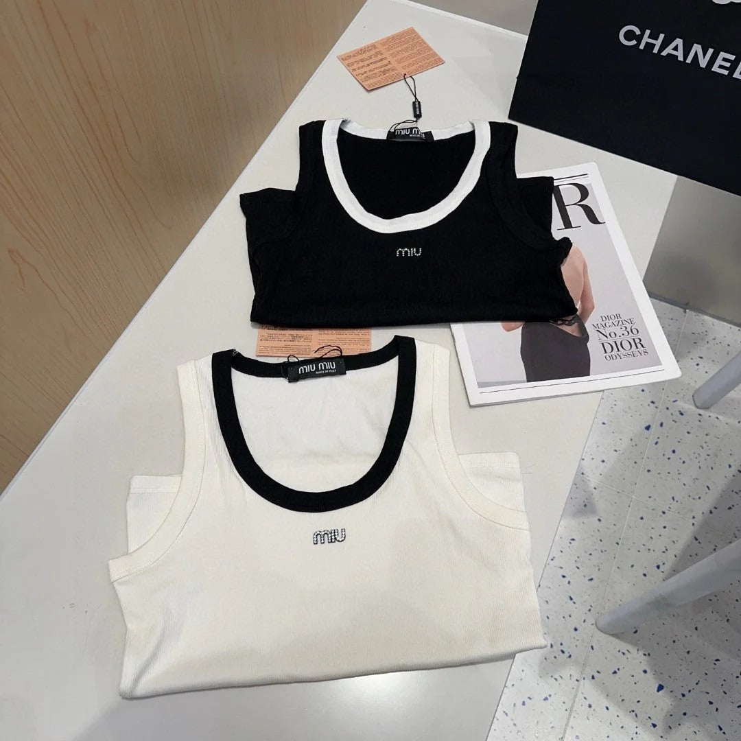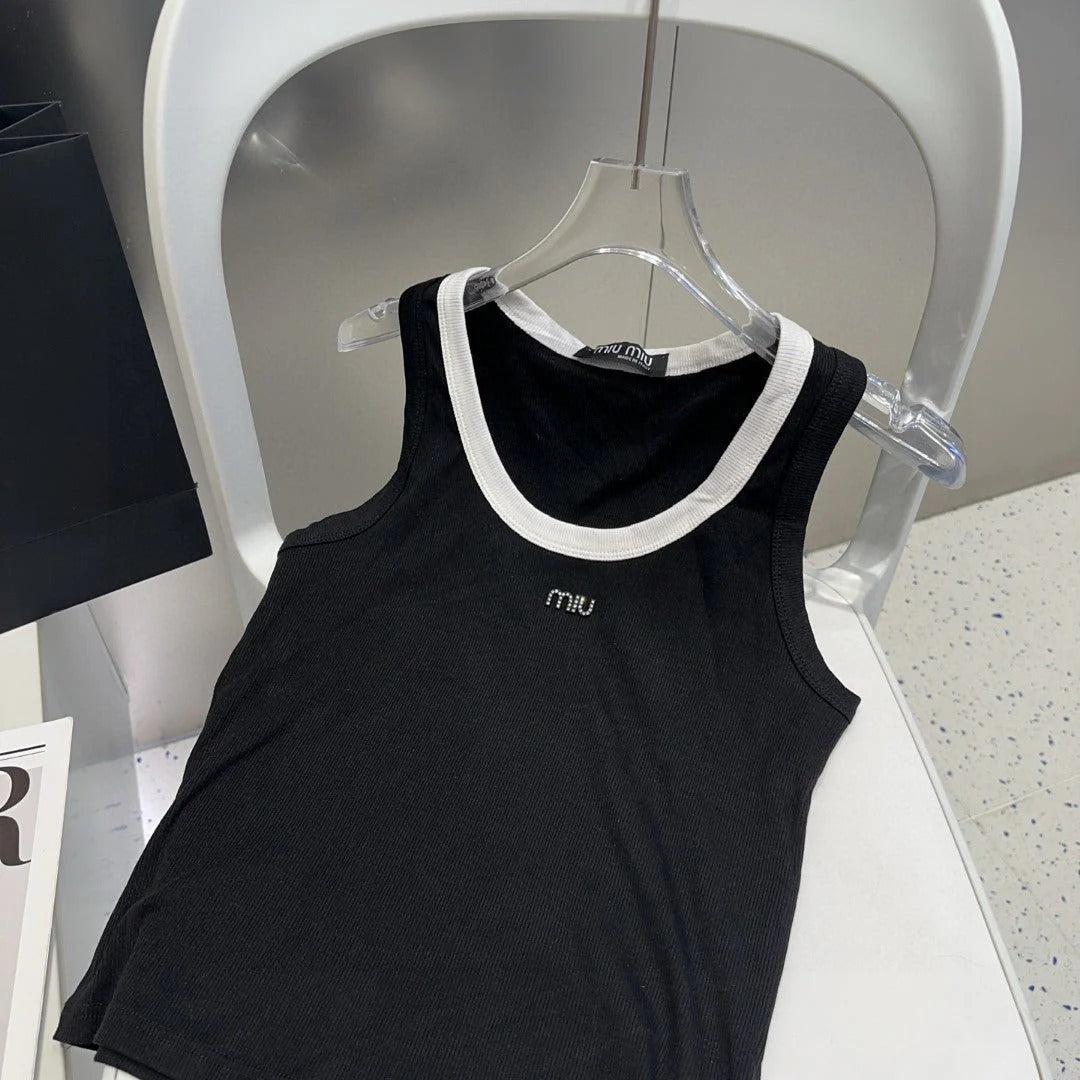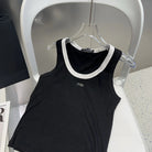 TANK TOP 615176 IN BLACK COTTON RIBBED WHITE TRIM