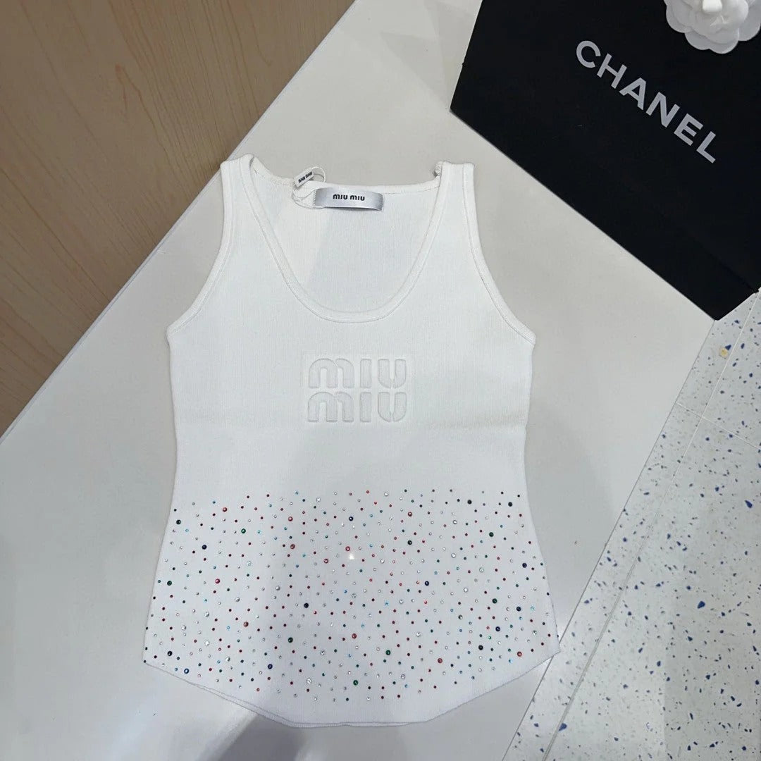 TANK TOP 640624 IN WHITE COTTON MUTILCOLOR CRYSTAL