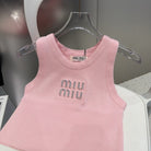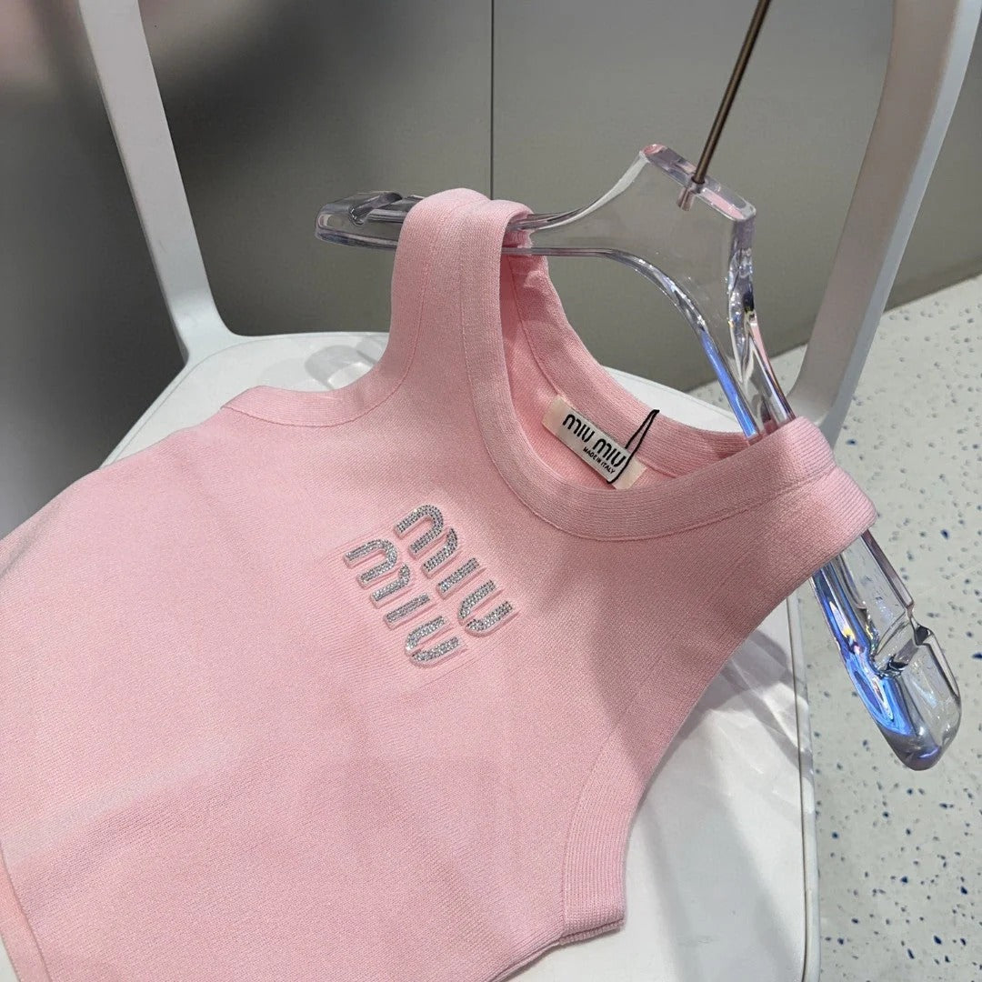 VISCOSE TANK TOP 643229 IN PINK COTTON RIBBED KNIT WITH EMBELLISHED LOGO