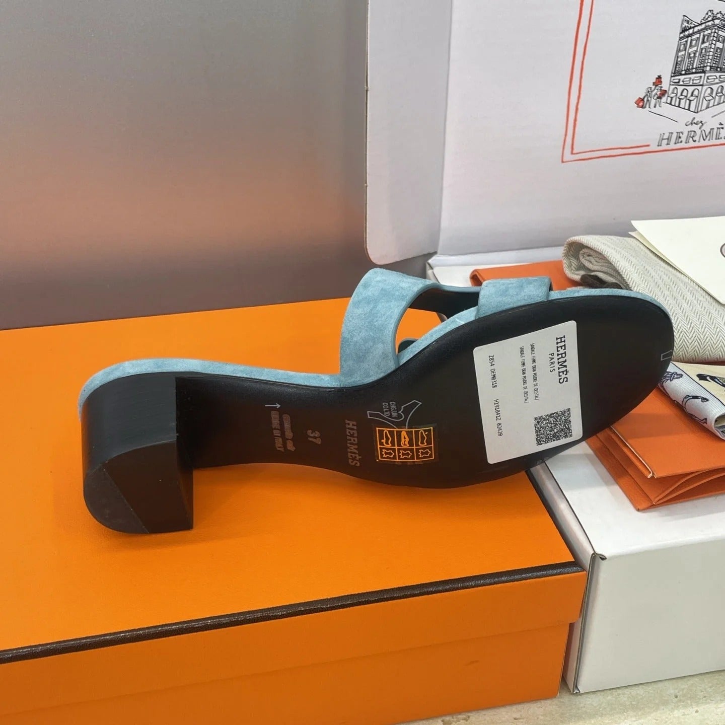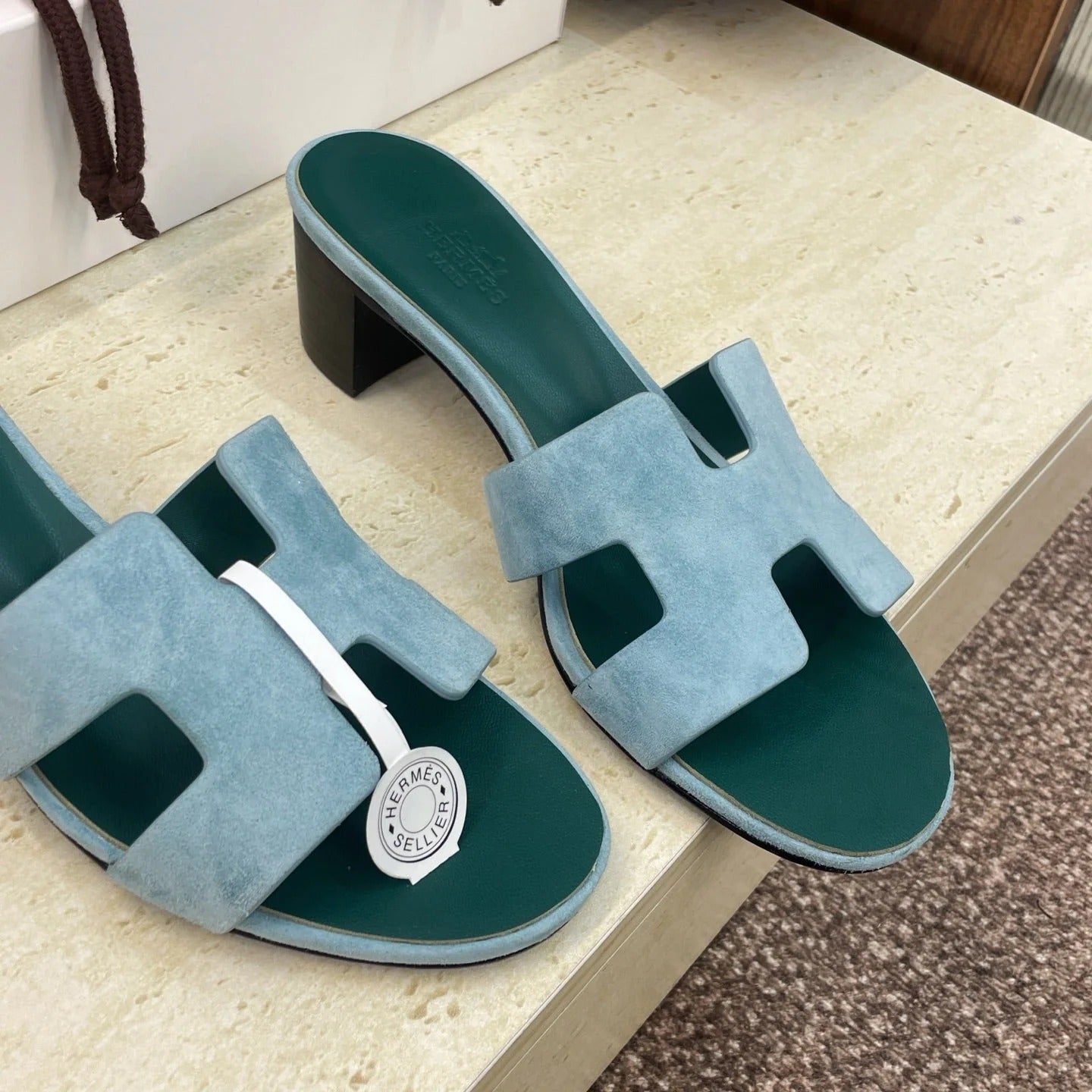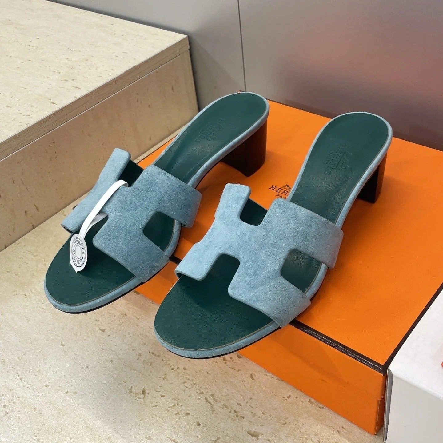 HM 26ss Oran Sandals 45 Blue Fresh Green Suede Cowhide 607220
