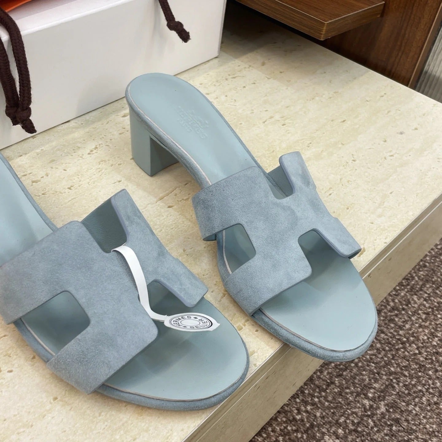 HM 26ss Oran Sandals 45 Muted Teal Suede Cowhide 607219