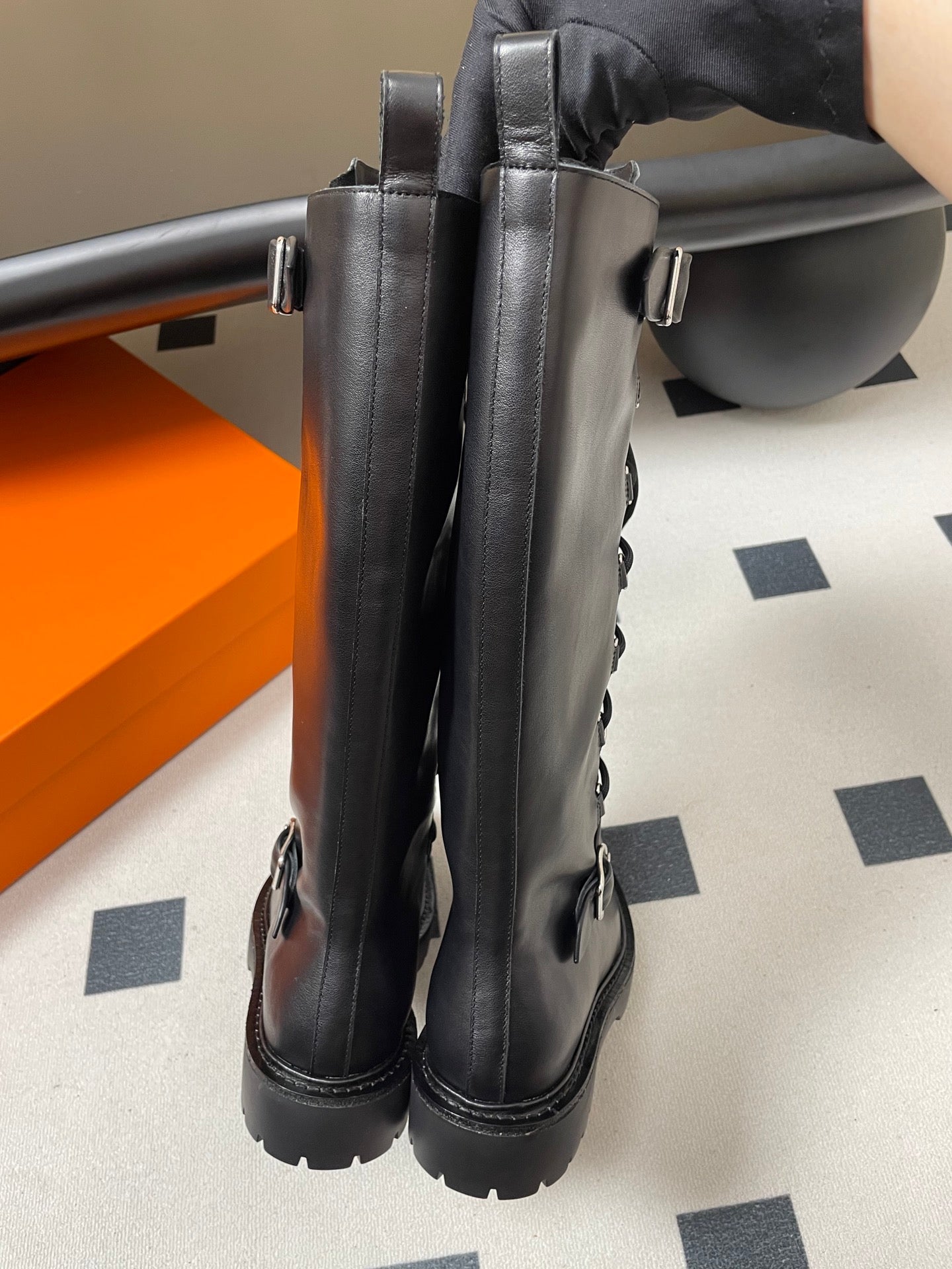 HM Lace Up Boots 25mm Belt Buckle Black Leather